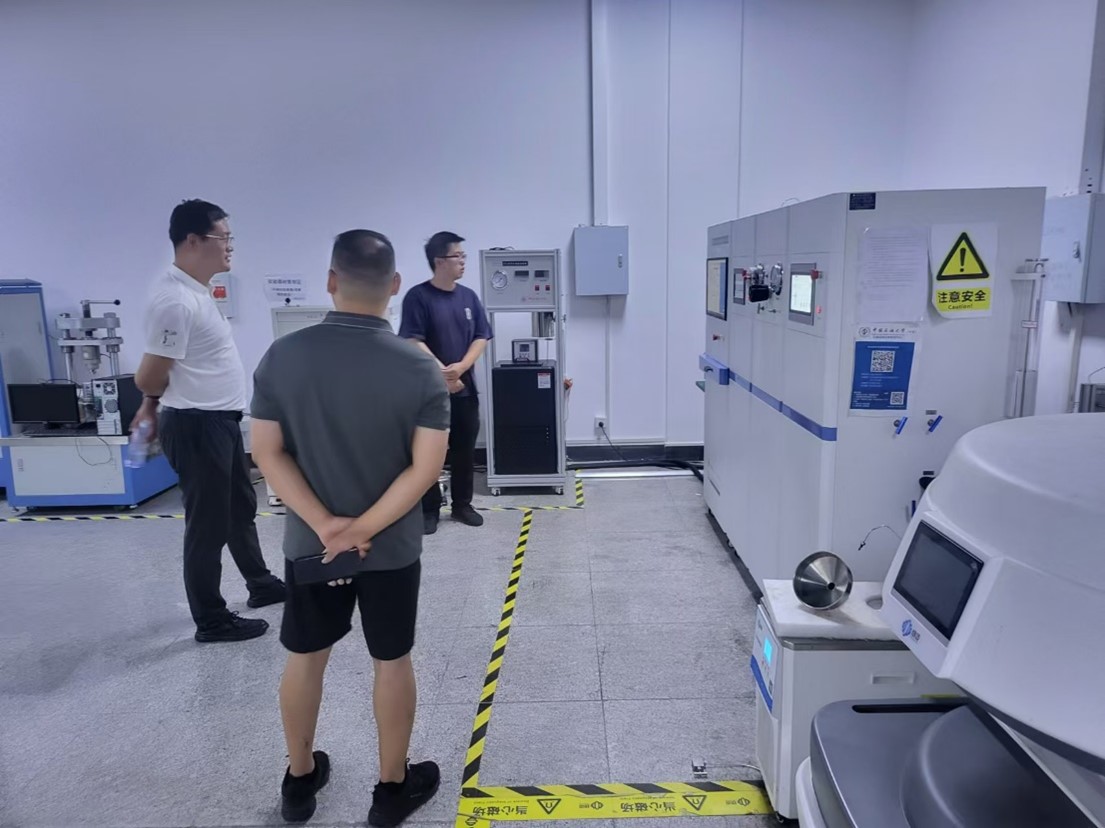 走訪期間,趙金省副院長(zhǎng)與中國(guó)石油大學(xué)(北京)碳中和未來技術(shù)學(xué)院兼職教授、優(yōu)秀青年基金獲得者劉月亮教授進(jìn)行了交流,就CCUS的發(fā)展現(xiàn)狀、油氣領(lǐng)域低碳化前沿技術(shù)開展了深入討論。會(huì)后,在劉月亮教授帶領(lǐng)下,參觀了“油氣資源與工程”全國(guó)重點(diǎn)實(shí)驗(yàn)室下屬的CO2高效利用與安全地質(zhì)封存一體化實(shí)驗(yàn)室,針對(duì)CO2高溫高壓地質(zhì)封存動(dòng)態(tài)驅(qū)替系統(tǒng)、多孔介質(zhì)CO2運(yùn)移演化分析系統(tǒng)、復(fù)雜油藏注CO2流動(dòng)調(diào)控在線可視化模擬系統(tǒng)等實(shí)驗(yàn)平臺(tái)的功能和組成進(jìn)行了深入探討。