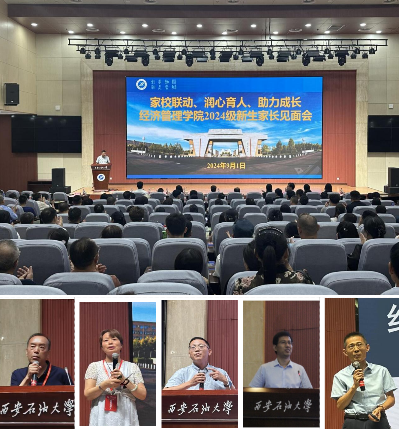 家校共育現(xiàn)關(guān)懷。9月1日中午召開家校聯(lián)動(dòng)、潤心育人、助力成長經(jīng)濟(jì)管理學(xué)院2024級新生家長見面會(huì)。王君萍詳細(xì)介紹了經(jīng)濟(jì)管理學(xué)院總體情況,包含學(xué)院發(fā)展歷史、師資結(jié)構(gòu)、業(yè)績成果等,并對學(xué)生后續(xù)發(fā)展提出殷切希望。董春詩對學(xué)院專業(yè)建設(shè)及本科教學(xué)情況進(jìn)行了介紹,涵蓋系辦情況、培養(yǎng)模式及學(xué)籍學(xué)位管理等方面。李春霄就研究生培養(yǎng)計(jì)劃進(jìn)行介紹,向家長說明了研究生培養(yǎng)方式、培養(yǎng)流程、畢業(yè)標(biāo)準(zhǔn)等。楊生強(qiáng)介紹了學(xué)院學(xué)生工作情況,強(qiáng)調(diào)大學(xué)教育不同于中學(xué)教育,盡快適應(yīng)大學(xué)階段學(xué)習(xí),要加強(qiáng)自我管理,希望2024級新生努力學(xué)習(xí),踔厲奮發(fā)。談建勤以“三個(gè)共同一個(gè)承諾”進(jìn)行總結(jié),即家校攜手共同監(jiān)督學(xué)生恪守法律底線,共同致力于學(xué)生全過程培養(yǎng),共同為西安石油大學(xué)的發(fā)展建言獻(xiàn)策、添磚加瓦。同時(shí),談建勤代表學(xué)院領(lǐng)導(dǎo)班子向家長鄭重承諾,全體教師將公平公正地履職盡責(zé),兢兢業(yè)業(yè)地致力于學(xué)生的全面成長,期望各位家長全力配合學(xué)校工作。