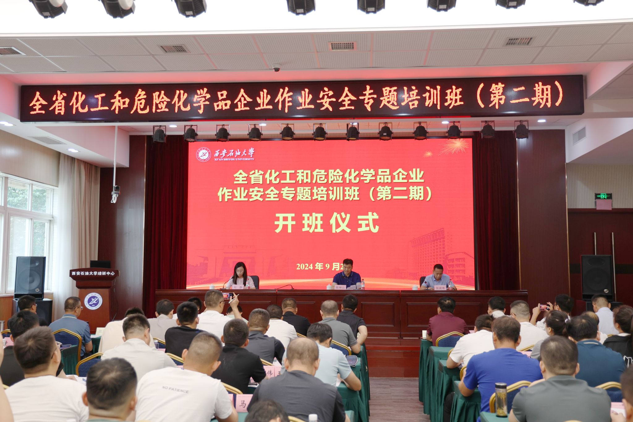 9月2日,全省化工和危險(xiǎn)化學(xué)品企業(yè)作業(yè)安全專(zhuān)題培訓(xùn)班(第二期)在我校明德校區(qū)順利開(kāi)班。陜西省應(yīng)急管理廳(以下簡(jiǎn)稱(chēng)“省應(yīng)急廳”)危化處處長(zhǎng)陳坤山、我校繼續(xù)教育學(xué)院黨總支書(shū)記張凌寒與來(lái)自全省的120名化工和危險(xiǎn)化學(xué)品生產(chǎn)企業(yè)負(fù)責(zé)人及安全管理人員參加儀式。儀式由省應(yīng)急廳?;幐碧庨L(zhǎng)劉靜主持。