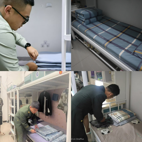 在宿舍內務整理中,退役大學生士兵們積極同本院系參訓干部溝通交流,課余時間主動深入宿舍,指導學弟學妹們完成宿舍內務工作。他們根據(jù)宿舍內務規(guī)范標準,身體力行示范“豆腐塊被子”的內務整理標準,協(xié)助參訓干部完成學生宿舍內務檢查工作。學弟學妹們不僅感受到了軍人雷厲風行的工作作風,還保持了干凈整潔的室內衛(wèi)生。