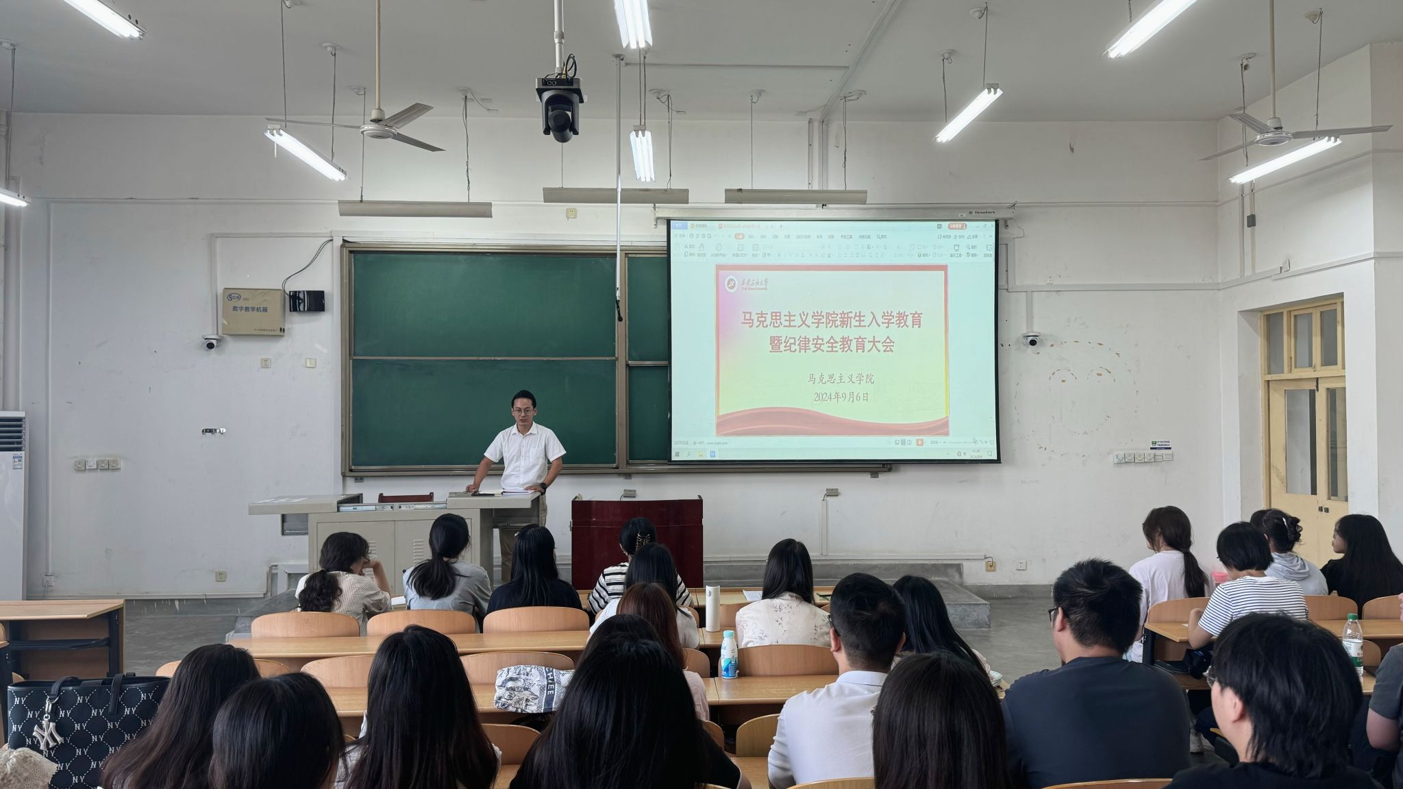 9月6日上午,馬克思主義學2024級新生入學教育暨紀律安全教育大會在鄠邑校區(qū)博思樓B201教室召開,馬克思主義學院黨總支副書記袁通路,輔導員康偉,全體2024級新生參加會議,會議由康偉主持。