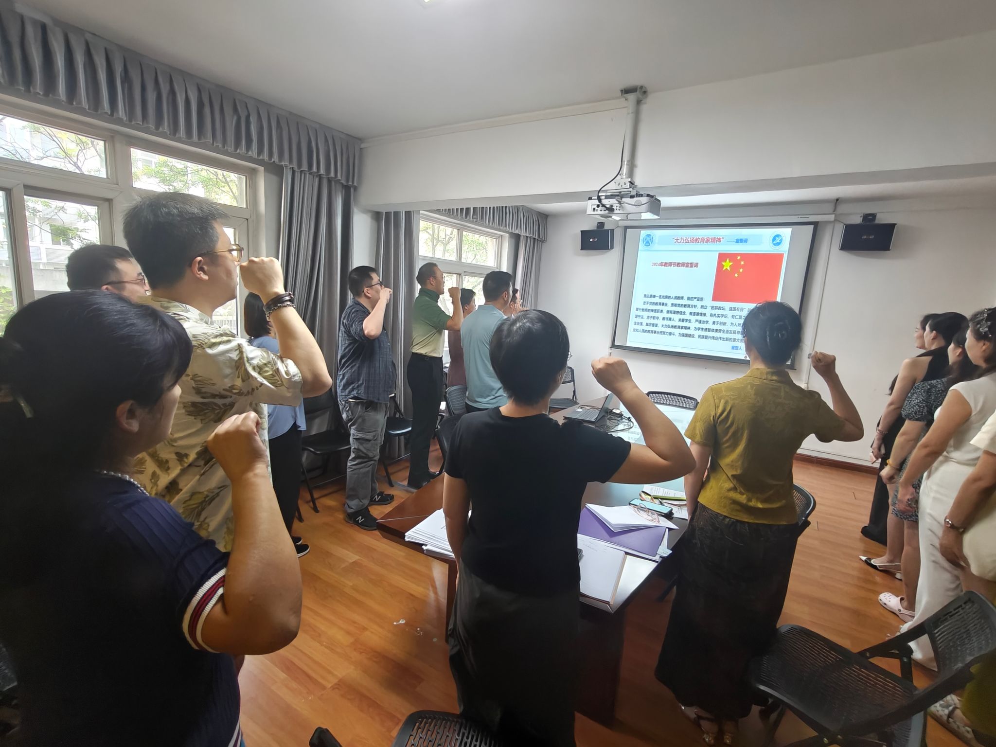 宣誓活動在莊嚴(yán)的國歌聲中拉開序幕,全體教職工肅立,面向國旗,共同表達(dá)了對祖國的熱愛和對教育事業(yè)的忠誠。