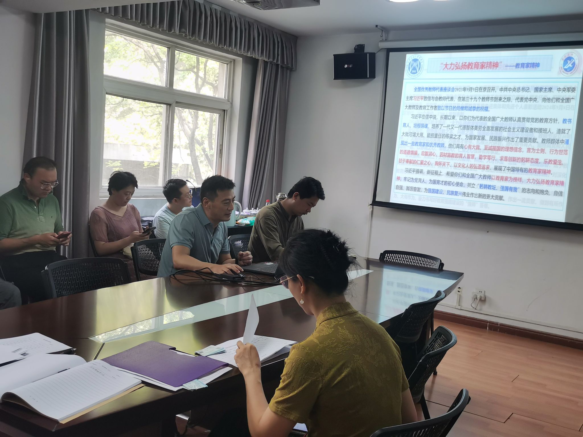 在第40個教師節(jié)到來之際,9月9日下午,音樂系在雁塔校區(qū)音樂系樓321會議室舉行了以“大力弘揚(yáng)教育家精神,加快建設(shè)教育強(qiáng)國”為主題的教師節(jié)宣誓活動?;顒佑上迭h總支書記孟開元主持,音樂系全體教職工參加了本次活動。