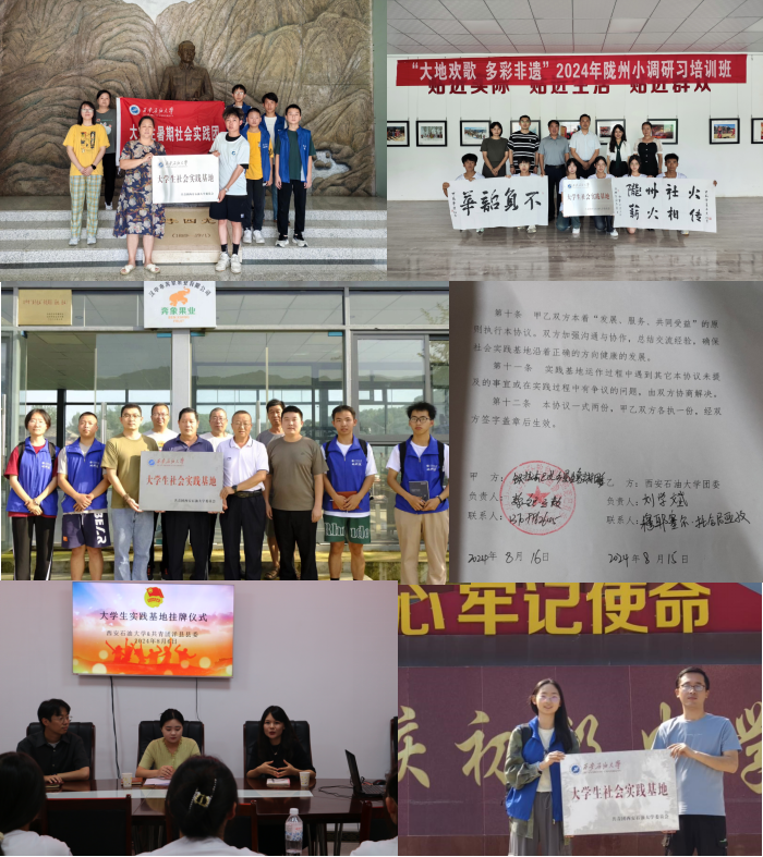 學院2024年暑假社會實踐活動得到了社會各方的廣泛關注,中華網(wǎng)、中國基層網(wǎng)、中國日報、陜西學聯(lián)、搜狐網(wǎng)、多彩大學生網(wǎng)等知名媒體報道轉(zhuǎn)發(fā)學生社會實踐活動,累計瀏覽量超10000次。為鞏固實踐成果,加深學校與企業(yè)、地方的合作交流,在院黨委的統(tǒng)一指導下,學院同城固縣桔園鎮(zhèn)鎮(zhèn)委會、隴縣文化館、黃岡李四光紀念館等8家單位簽訂了社會實踐合作基地建設協(xié)議并舉行掛牌儀式,建立了長期的實踐合作關系。