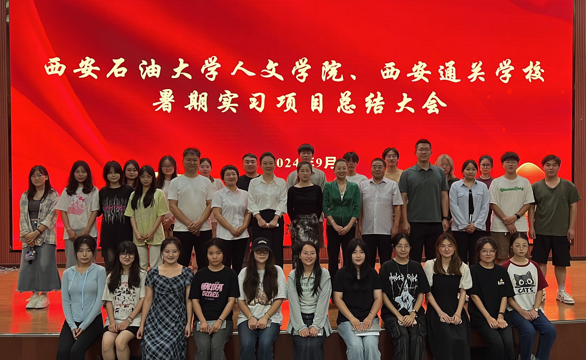 為了總結(jié)暑期實(shí)習(xí)項(xiàng)目經(jīng)驗(yàn),幫助學(xué)生提前規(guī)劃職業(yè)生涯,進(jìn)一步促進(jìn)學(xué)院就業(yè)工作的順利開展,2024年9月12日下午,人文學(xué)院在鄠邑校區(qū)弘石報(bào)告廳召開了西安石油大學(xué)人文學(xué)院、西安通關(guān)學(xué)校暑期實(shí)習(xí)項(xiàng)目總結(jié)大會(huì)。西安通關(guān)學(xué)校創(chuàng)始人吳敏、執(zhí)行校長(zhǎng)張麗婷,人文學(xué)院黨委書記余小勇、副書記盛丹、副院長(zhǎng)蘭昆出席會(huì)議,會(huì)議由盛丹主持。