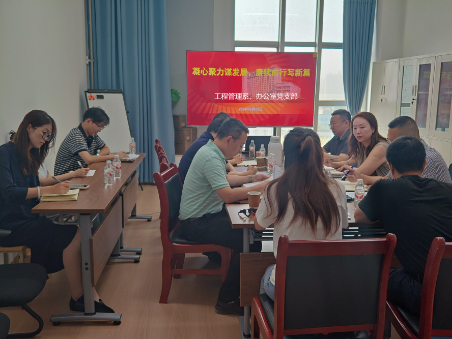 9月13日上午,土木工程學(xué)院工程管理系、辦公室教工黨支部在雁塔校區(qū)東方石油樓1105召開了“凝心聚力謀發(fā)展,賡續(xù)前行譜新篇”為主題的支部大會(huì),專題研討學(xué)科建設(shè)。學(xué)院黨委書記賈莉娜以普通黨員的身份參會(huì),黨支部全體黨員參加會(huì)議。會(huì)議由黨支部書記牛波主持。