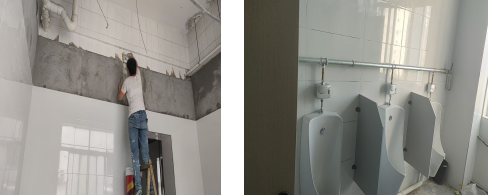 2.衛(wèi)生間改造。為改善教學(xué)樓衛(wèi)生間設(shè)施老化、滲漏水嚴(yán)重、衛(wèi)生狀況差、水壓不足等問題,暑假期間對教學(xué)樓部分衛(wèi)生間進(jìn)行改造。主要改造內(nèi)容為對衛(wèi)生間地面、防水、小便器、潔具、上下水、排風(fēng)、洗漱臺等進(jìn)行改造。本次共涉及衛(wèi)生間9間。