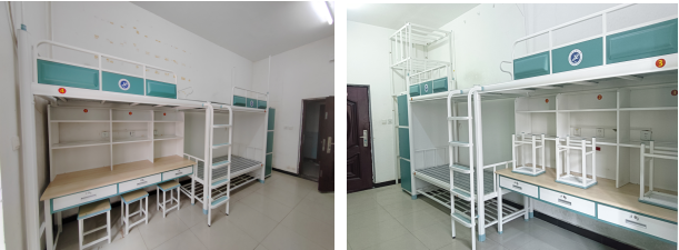 9.學(xué)生公寓改造。鄠邑校區(qū)7-11號學(xué)生公寓樓公共區(qū)域、部分畢業(yè)生宿舍墻面粉刷及設(shè)施維修,約24465.24平方米。改造后,不僅提升了樓體的美觀度,更為同學(xué)們提供了更加舒適的學(xué)習(xí)和生活環(huán)境。為了提升2024級新生宿舍儲物空間,后勤處暑期購置并安裝了834套行李架。每套可容納四個(gè)大行李箱,采用上下雙層設(shè)計(jì),二氧化碳保護(hù)焊接,表面經(jīng)多重工藝處理,環(huán)保健康,無異味甲醛。鄠邑校區(qū)1至4號公寓樓西側(cè)新建了電動自行車停車棚及充電樁,有效緩解了周邊亂停亂放和充電樁不足問題。車棚采用10×10厘米方鋼結(jié)構(gòu),頂棚為藍(lán)色隔熱陽光板,安全穩(wěn)固,外觀美觀。車棚總面積380平方米,新增144個(gè)充電端口。