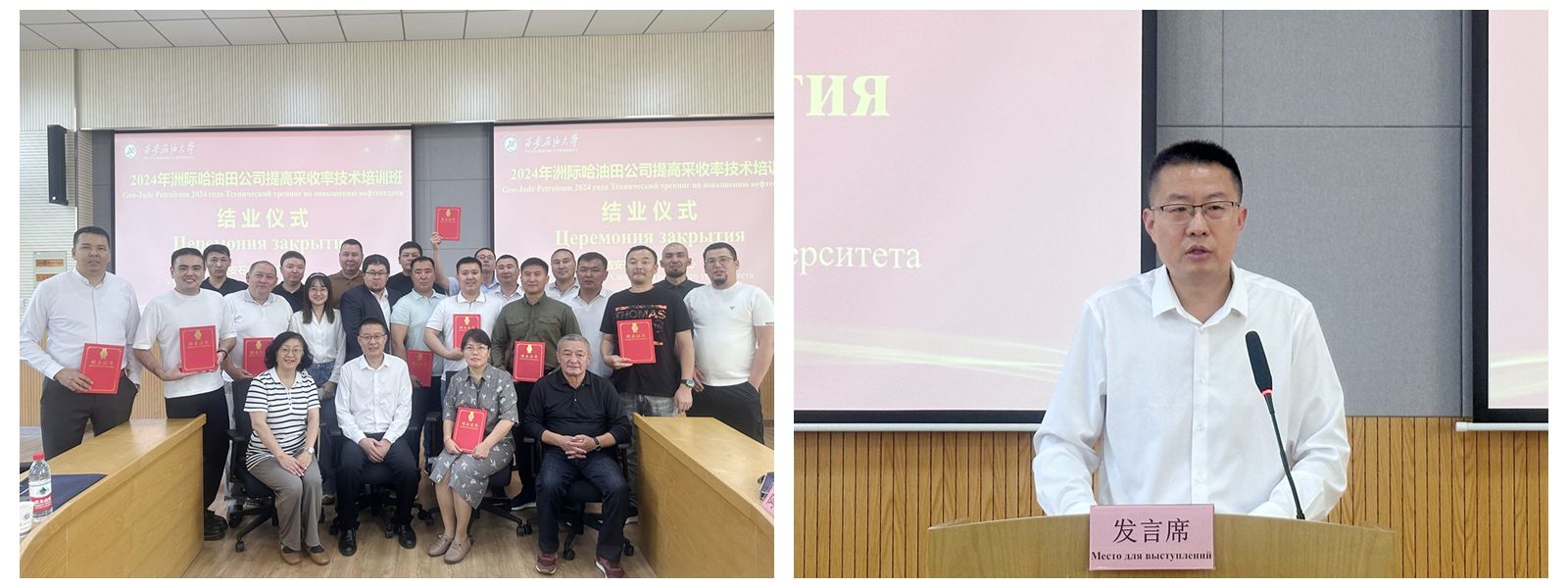 結(jié)業(yè)儀式上,來(lái)自洲際油氣公司哈薩克斯坦馬騰油田的采油隊(duì)長(zhǎng)卡杜科夫和修井工程師伊茲穆哈諾夫作為學(xué)員代表做了交流發(fā)言,他們對(duì)西安石油大學(xué)培訓(xùn)中心在培訓(xùn)期間的高質(zhì)量教學(xué)管理和專業(yè)服務(wù)保障表示感謝,培訓(xùn)內(nèi)容豐富、實(shí)用性強(qiáng),通過(guò)系統(tǒng)學(xué)習(xí),了解了中國(guó)油田開(kāi)發(fā)前沿技術(shù),開(kāi)闊了視野,學(xué)習(xí)了經(jīng)驗(yàn),對(duì)參訓(xùn)學(xué)員實(shí)際工作具有很強(qiáng)的指導(dǎo)意義。