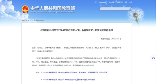 據(jù)悉,教育部人文社會科學研究項目由教育部面向全國普通高等學校設立,是目前我國人文社科研究領域?qū)哟胃?、權威性強、影響大的科研項目,也是衡量高校人文社科科研實力和水平的重要指標之一,具有重要的示范和引導作用。此類研究項目旨在適應我國經(jīng)濟建設、社會發(fā)展和高等教育事業(yè)發(fā)展需要,進一步推進高等學校人文社會科學的繁榮,推動人文社科領域的研究和發(fā)展,推出有分量、有深度、有價值的研究成果并促進人文社科知識的傳播和應用。