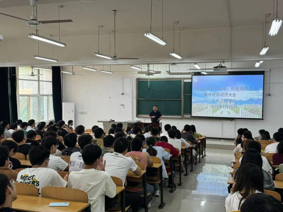 本次就業(yè)考研再動員大會幫助2025屆畢業(yè)生進一步了解目前的就業(yè)和考研形勢,有利于學生進一步明確自身定位與發(fā)展規(guī)劃。土木工程學院將持續(xù)開展一系列職業(yè)生涯規(guī)劃指導活動,為學畢業(yè)生就業(yè)考研保駕護航。