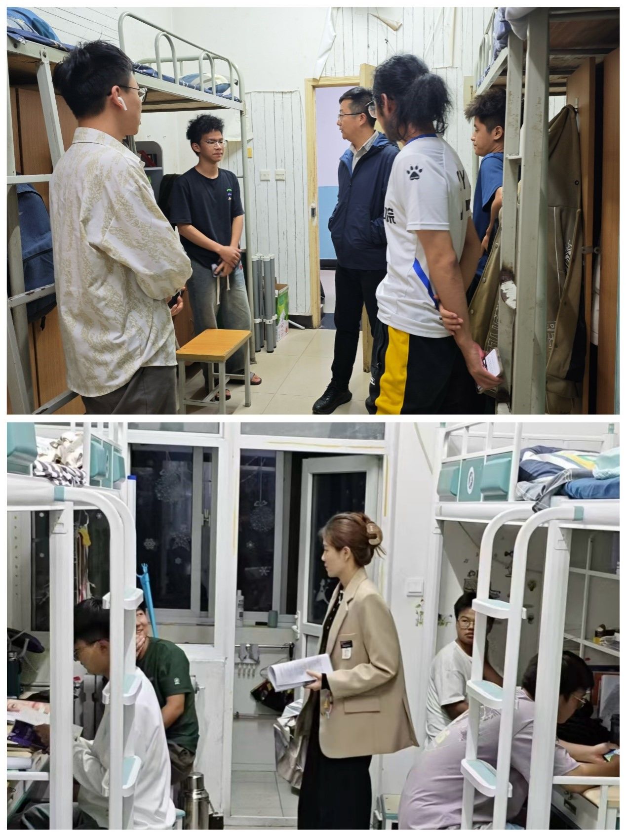 ——深入宿舍走訪。29日晚,學(xué)院黨委副書記劉煒航和各年級輔導(dǎo)員深入學(xué)生宿舍,與學(xué)生進行親切交談,詳細了解學(xué)生假期去向以及日常學(xué)習(xí)生活的實際困難,并就假期宿舍安全、人身安全、財產(chǎn)安全、交通安全、網(wǎng)絡(luò)安全等方面提出了具體要求,叮囑同學(xué)們嚴格遵守學(xué)校公寓管理相關(guān)規(guī)定,提高安全防范意識,樹立良好的生活習(xí)慣,共同營造安全、舒適和諧的住宿環(huán)境。