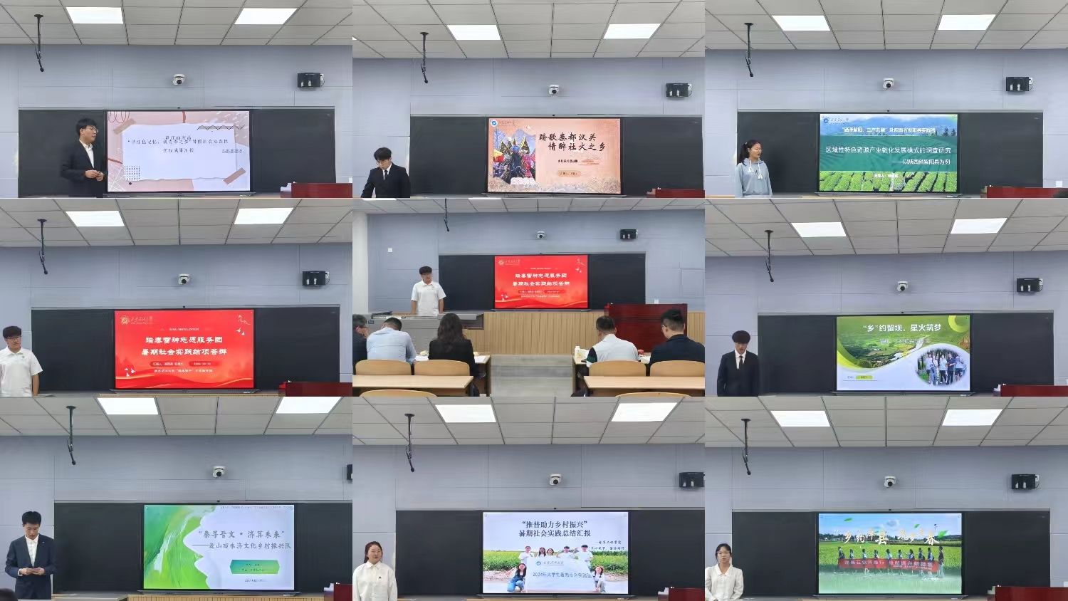 答辯現(xiàn)場,各實踐團隊代表按照抽簽順序依次上臺答辯,通過PPT展示和精彩演講,分別從組織策劃、活動背景、工作實施、活動特色、活動成果和實踐感悟等六個方面依次進行陳述,生動地展示了豐碩的實踐成果、實踐經(jīng)驗和心得體會,各實踐團隊深入基層、奔赴一線,扎根祖國大地,在實踐中詮釋青年擔當,踐行服務使命,在感受我國經(jīng)濟快速發(fā)展和社會長期穩(wěn)定的生動實踐中受教育、長才干、做貢獻, 以實際行動彰顯新時代青年學子的責任與擔當。