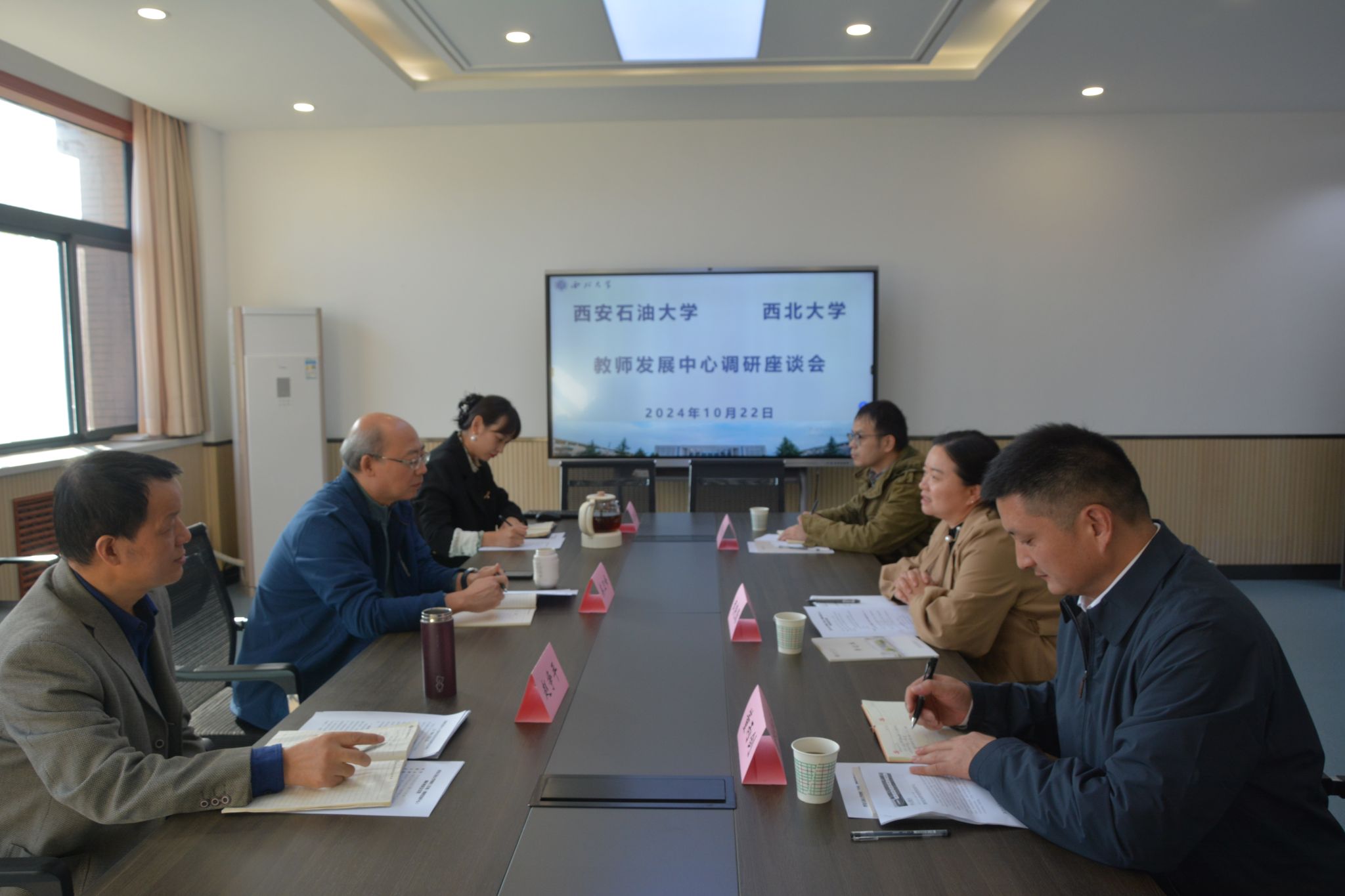 為學(xué)習(xí)借鑒兄弟高校教師發(fā)展中心建設(shè)理念和先進(jìn)經(jīng)驗(yàn),提高我校教師發(fā)展中心建設(shè)水平,更好地為廣大教師提供精準(zhǔn)化服務(wù),10月12日下午,我校教師教學(xué)發(fā)展中心主任武曉朦、副主任董丙劍和教師培訓(xùn)科周汶術(shù)一行3人赴上西北大學(xué)教師發(fā)展中心學(xué)習(xí)調(diào)研。西北大學(xué)教師發(fā)展中心主任英衛(wèi)峰、副主任趙爭(zhēng)平、秘書(shū)王佳琪參加學(xué)習(xí)調(diào)研會(huì)。