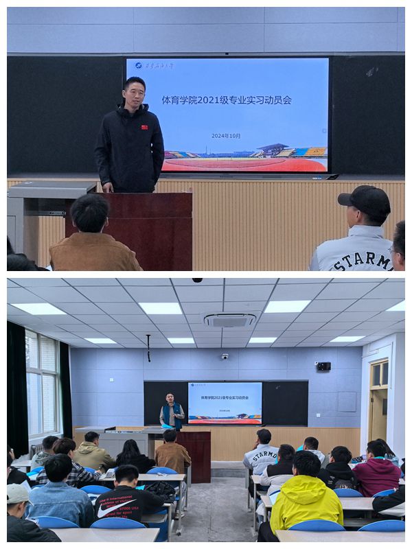 匠心引領(lǐng),逐夢(mèng)啟航。10月29日下午,學(xué)院在鄠邑校區(qū)博覽樓A217教室召開(kāi)了2021級(jí)專業(yè)實(shí)習(xí)動(dòng)員會(huì)。會(huì)議伊始,胥山老師首先代表學(xué)院向即將踏上實(shí)習(xí)征程的同學(xué)們表示熱烈祝賀和殷切期望。他談到,實(shí)習(xí)是理論知識(shí)與實(shí)踐技能相結(jié)合的關(guān)鍵環(huán)節(jié),對(duì)于提升同學(xué)們的專業(yè)素養(yǎng)和綜合能力具有重要意義。隨后,李壽邦院長(zhǎng)從思想教育的角度出發(fā),對(duì)同學(xué)們進(jìn)行了深刻的實(shí)習(xí)動(dòng)員。他指出,實(shí)習(xí)期間同學(xué)們的身份不僅是學(xué)生,更是體育精神的傳播者和體育事業(yè)的接班人,希望同學(xué)們能夠保持良好的品德修養(yǎng),展現(xiàn)體育人的風(fēng)采,與實(shí)習(xí)單位建立和諧的合作關(guān)系,為學(xué)院爭(zhēng)光,為體育事業(yè)添磚加瓦。隨后,李壽邦院長(zhǎng)向?qū)W生們強(qiáng)調(diào)了安全的重要性,要求同學(xué)們時(shí)刻保持警惕,確保實(shí)習(xí)工作的順利進(jìn)行。會(huì)議最后,輔導(dǎo)員張澤正向?qū)W生解讀了實(shí)習(xí)工作的具體安排和注意事項(xiàng),并組織學(xué)生填寫(xiě)了實(shí)習(xí)期間安全承諾書(shū)。