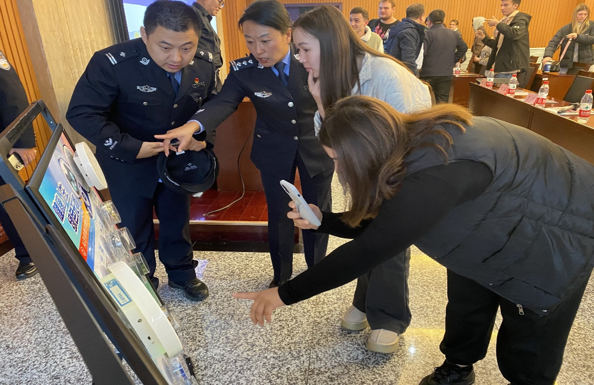 李敦警官詳細講解了宗教管理及互聯(lián)網使用的相關法律規(guī)定。李慧中警官向國際學生詳細介紹了簽證申請、居留許可辦理、外國人臨時住宿登記和出入境注意事項等內容。張楊警官重點介紹了禁毒相關法律法規(guī),講解毒品成癮原理、生理心理危害性,提醒學生時刻保持警惕,遠離毒品。席擘警官針對國際學生在日常生活中可能遇到的治安、交通和住宿等法律問題進行了詳細介紹,提供了實用的法律建議和求助途徑。