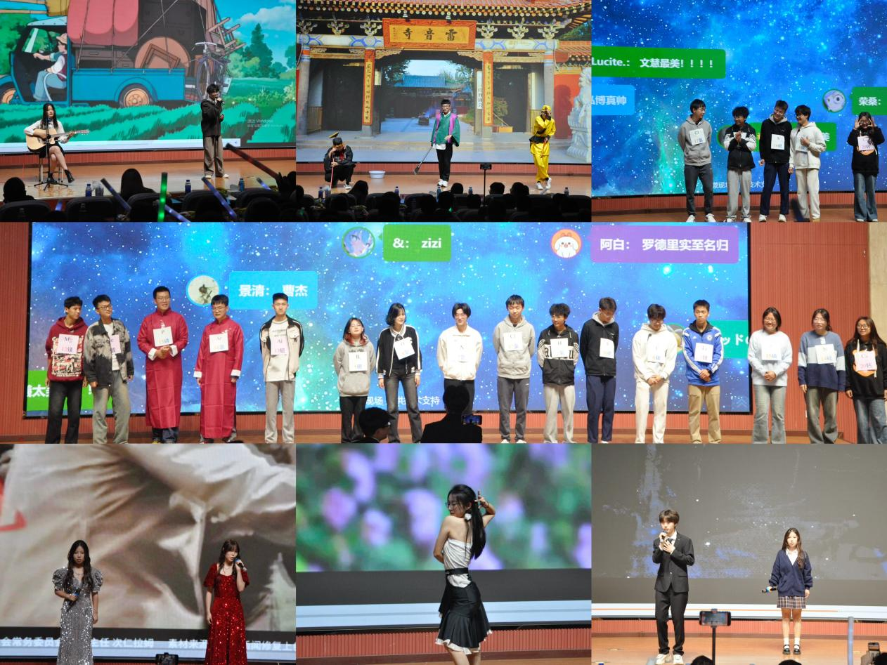 演出在團(tuán)體啦啦操表演中正式拉開序幕。隨后,形式多樣、內(nèi)容豐富的歌曲、相聲、舞蹈、小品等文藝節(jié)目依次登場(chǎng),奏響了同學(xué)們青春的樂章。說唱《曬》道出青年永不言敗的生活態(tài)度,恰似驕陽(yáng)破云,熠熠生輝;舞蹈《蘭亭序》舞者們翩躚而舞,引領(lǐng)觀眾悠然領(lǐng)略獨(dú)特東方神韻,仿若墨韻流芳,詩(shī)意氤氳;歌曲《世界上的另一個(gè)我》動(dòng)人旋律悠悠奏響,絲絲縷縷,撩人心弦;相聲表演中,演員妙語連珠,以幽默詼諧的話語,活靈活現(xiàn)地演繹人間百態(tài);街舞《champion》活力四射,舞者們以極具爆發(fā)力的舞步,淋漓盡致地詮釋當(dāng)代青年的熱血與霸氣,仿若烈火燃情,震撼人心;歌曲《就讓這大雨全都落下》音符跳躍,奏響一場(chǎng)情緒的磅礴大雨,如泣如訴,惹人共情;話劇《八十一難》生動(dòng)詮釋師徒四人西天取經(jīng)那布滿荊棘的征程,盡顯堅(jiān)毅,恰似史詩(shī)畫卷,徐徐展開;吉他彈唱《世間美好與你環(huán)環(huán)相扣》淺吟低唱,引領(lǐng)觀眾漫步走進(jìn)那愛意滿溢的世界,靜靜感受人世間的美好溫情,如沐春風(fēng);舞蹈《拉丁舞串燒》活力奔放,表演者們熱情似火的舞步與音樂節(jié)奏相互交融,將拉丁風(fēng)情展現(xiàn)得酣暢淋漓;歌曲《不再猶豫》激昂旋律奏響,驅(qū)散心頭的迷茫,振奮人心;韓舞《世界末日》扣人心弦,表演者憑借獨(dú)特舞步帶領(lǐng)觀眾踏入一個(gè)震撼人心的舞蹈時(shí)空;歌曲《如愿》余音繞梁,為此次開幕式畫上了圓滿的句號(hào),令人回味。