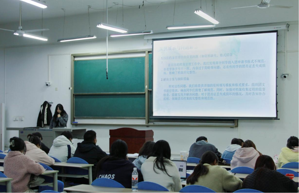 11月20日,人文學(xué)院團(tuán)委學(xué)生會組織部部長郭雨涵帶來了“團(tuán)務(wù)工作實務(wù)”主題講座,2024級全體團(tuán)支書、輔導(dǎo)員助理以及組織部干事參加。本次講座圍繞著團(tuán)務(wù)工作的實際操作展開,為大學(xué)生團(tuán)干部講解了具體的基礎(chǔ)團(tuán)務(wù)工作操作方法與智慧團(tuán)建的使用說明。在講座中,郭雨涵列舉了日常工作可能面臨的問題,并且給出了解決方法,她強(qiáng)調(diào),在收集資料的時候確保內(nèi)容和數(shù)量正確是至關(guān)重要的。對于智慧團(tuán)建這一網(wǎng)絡(luò)系統(tǒng),她表示,智慧團(tuán)建是現(xiàn)代團(tuán)務(wù)工作的重要信息化平臺,也是各位團(tuán)干部展開團(tuán)務(wù)工作的重要網(wǎng)絡(luò)陣地,各位團(tuán)干部需要牢牢掌握系統(tǒng)的使用方法,運(yùn)用網(wǎng)絡(luò)工具更好地服務(wù)同學(xué)。
