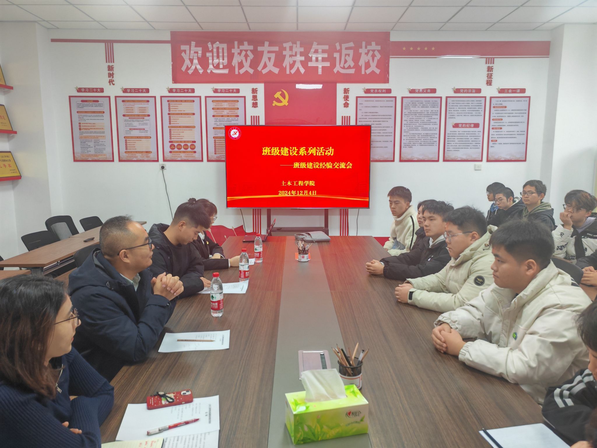 為進一步加強本科生班級建設(shè)工作,按照學院統(tǒng)一安排和部署,12月4日,土木工程學院在鄠邑校區(qū)開物樓135會議室舉辦班級建設(shè)經(jīng)驗交流會,團委書記、學工辦主任李化杰主持會議。2022級輔導員奴麗艷木老師、會計2202班任曉慧同學、石工2208班班長劉濤同學受邀參會,學院2023級、2024級本科班級主要學生干部20余人參加了會議。