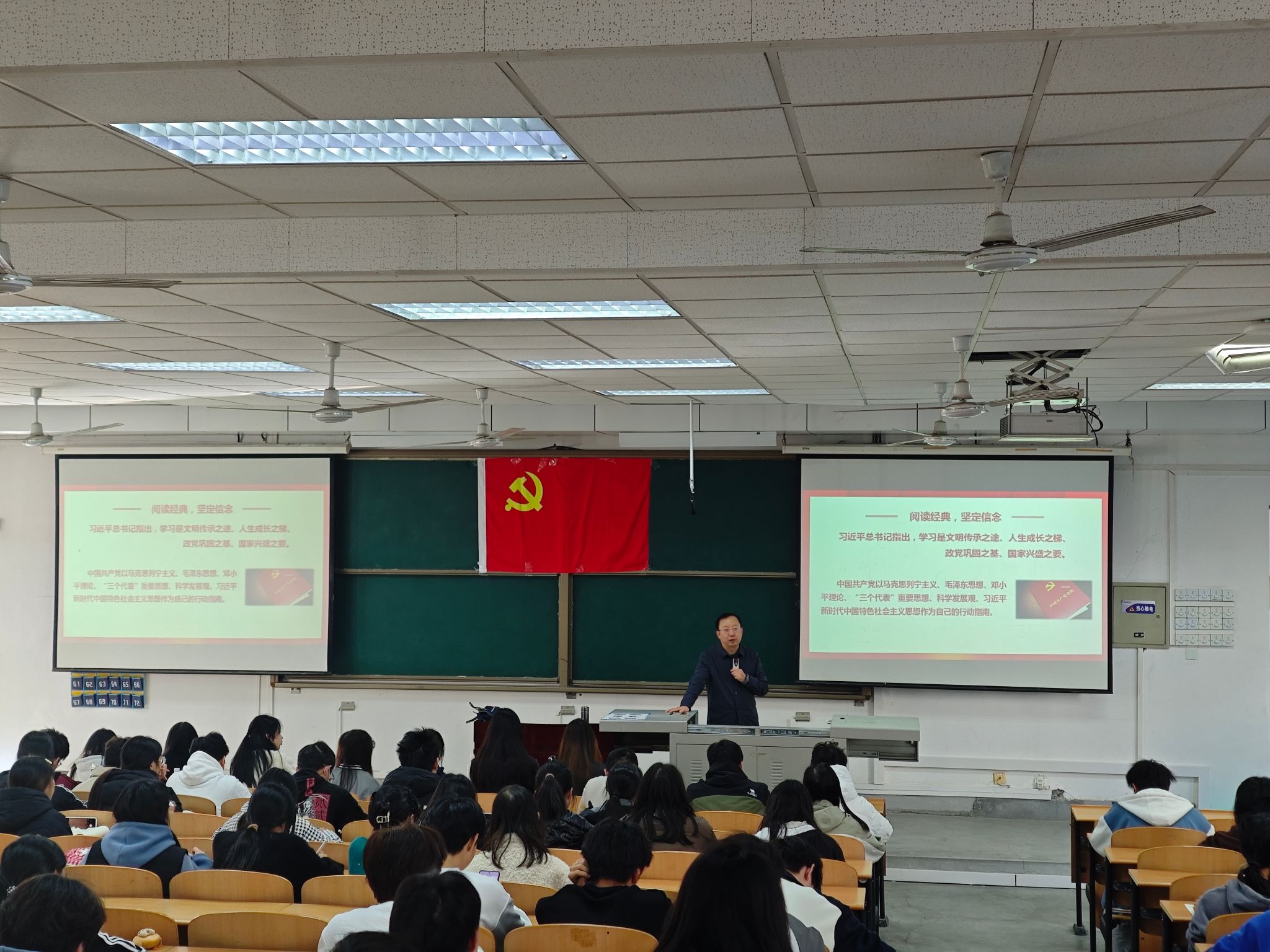 種宇宏從《共產(chǎn)黨宣言》誕生的歷史背景談起,對(duì)《共產(chǎn)黨宣言》展開了深入細(xì)致地解讀。他概括講解了《共產(chǎn)黨宣言》的主要內(nèi)容和基本原理,全面系統(tǒng)地闡述了馬克思主義對(duì)階級(jí)斗爭、無產(chǎn)階級(jí)革命和未來社會(huì)形態(tài)的看法。在講述《共產(chǎn)黨宣言》對(duì)中國社會(huì)和中國先進(jìn)知識(shí)分子的影響時(shí),他以國家領(lǐng)導(dǎo)人和名人閱讀學(xué)習(xí)《共產(chǎn)黨宣言》感悟后形成的新思想為時(shí)間線,講述了馬克思主義中國化時(shí)代化的歷史進(jìn)程。他著重闡述了重溫《共產(chǎn)黨宣言》的當(dāng)代價(jià)值和歷史意義,引導(dǎo)同學(xué)們堅(jiān)定理想信念,牢記歷史使命,勿忘人民囑托,在新時(shí)代傳承和踐行《共產(chǎn)黨宣言》的精神內(nèi)涵,真正做到在政治上、思想上、行動(dòng)上與黨中央保持高度一致,用青春書寫新時(shí)代堅(jiān)持和發(fā)展中國特色社會(huì)主義新篇章。