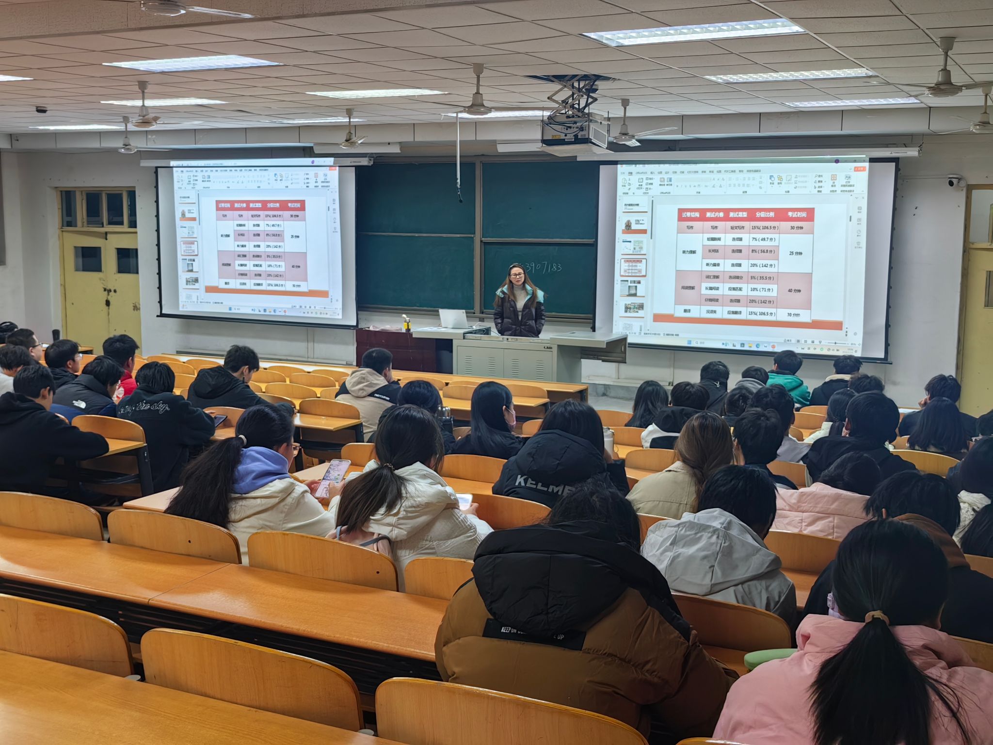 考試結束后,學院特邀英語四級考試指導老師周冰為同學們授課。講座中,周老師結合上一場考試真題,分享了四級考試的解題技巧和策略,包括聽力的抓取關鍵信息、閱讀的快速定位、寫作的結構等,為同學們指明了備考的重點和方向。