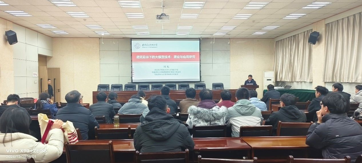 12月10日下午,電子工程學(xué)院邀請(qǐng)西安電子科技大學(xué)劉旭博士在雁塔校區(qū)第三會(huì)議室作了題為《諾獎(jiǎng)啟示下的人工智能大模型技術(shù)-理論與應(yīng)用研究》的學(xué)術(shù)報(bào)告。報(bào)告會(huì)由學(xué)院副院長(zhǎng)任志平主持,共70多名師生現(xiàn)場(chǎng)聆聽(tīng)了報(bào)告。