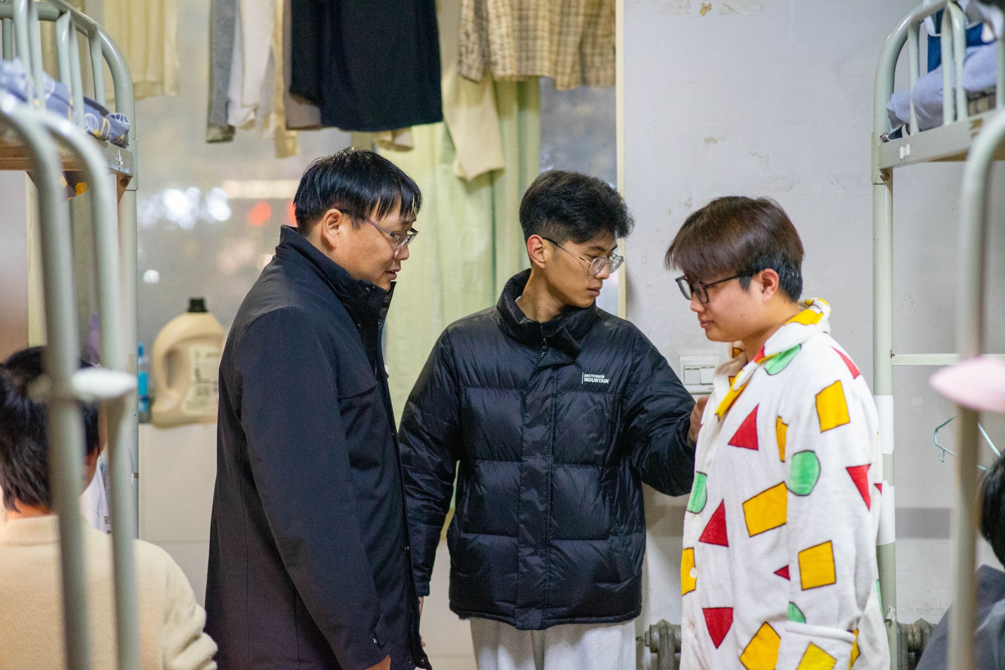 11月25日,理學(xué)院副書記楊富民、2022級以及2023級輔導(dǎo)員李猛共同走訪了學(xué)院學(xué)生宿舍,與學(xué)生面對面交流,了解他們的生活和學(xué)習(xí)情況,并重點檢查了宿舍的安全隱患。楊富民強調(diào)了宿舍安全的重要性,提醒學(xué)生們要時刻保持警惕,注意用電安全、防火防盜等。同時,他還鼓勵學(xué)生們要相互關(guān)心、相互幫助,共同維護宿舍的安全和穩(wěn)定。