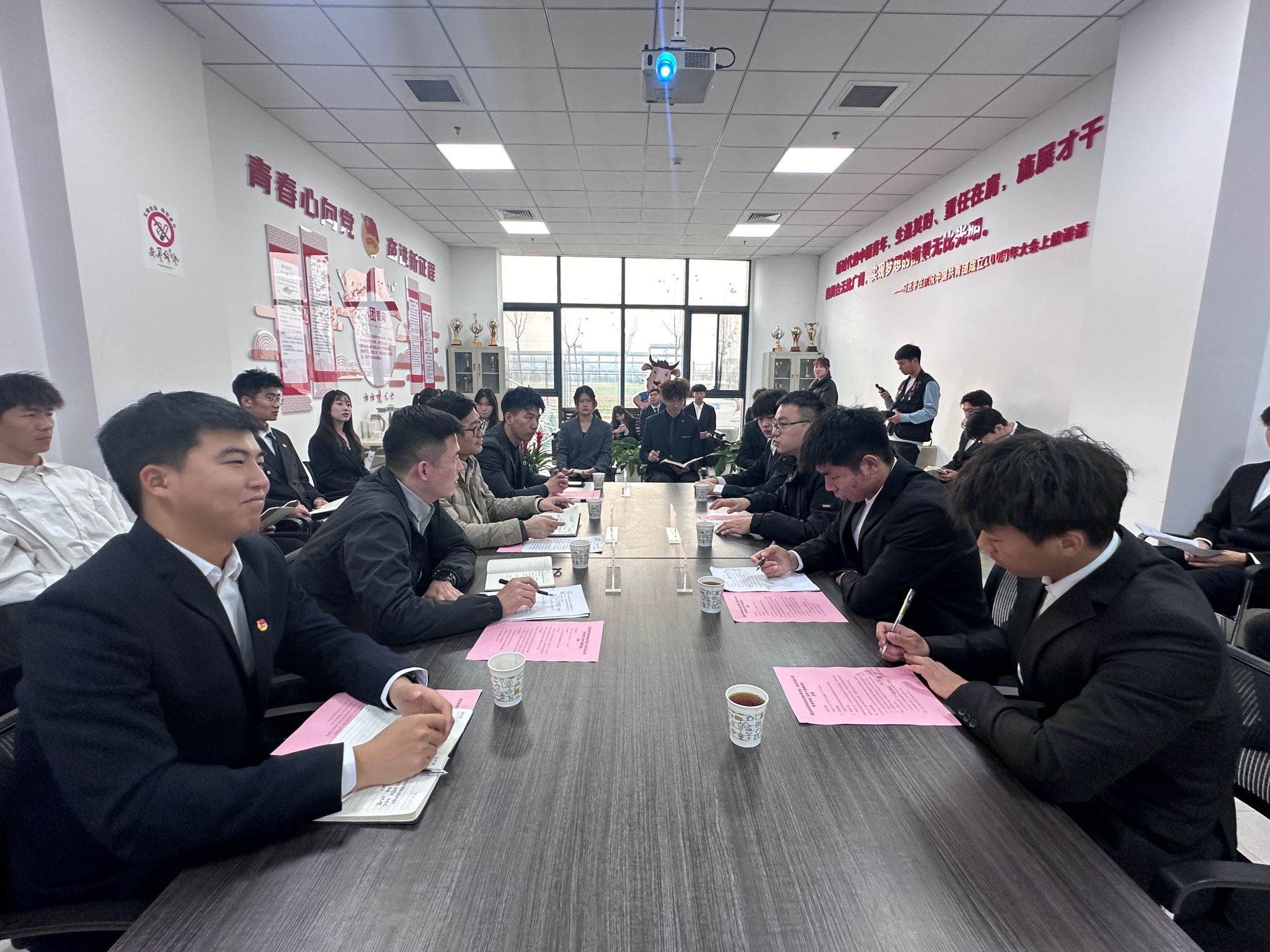 隨后,在交流環(huán)節(jié)中,兩個學(xué)院學(xué)生會主席團負責(zé)同學(xué)就各自學(xué)院的學(xué)生會組織進行了介紹,并就如何立足于學(xué)院、學(xué)校實際情況開展學(xué)生會工作進行了經(jīng)驗分享。此外,雙方學(xué)生會成員就品牌形象建設(shè)、學(xué)生會組織建設(shè)、新媒體平臺管理維護、部門職能任務(wù)分工、活動創(chuàng)新與實施等方面進行了交流討論,各自詳盡介紹了學(xué)生會的整體架構(gòu)和運行模式,并從職能機制到組織運轉(zhuǎn)等方面對學(xué)生會工作所面臨的機遇和挑戰(zhàn)進行了全方位的交流,闡述了各自組織未來發(fā)展的系列構(gòu)想。最后,宗月民對本次交流活動進行了總結(jié)講話,希望同學(xué)們能夠珍惜這次交流學(xué)習(xí)的機會,不斷提高自身素質(zhì)和能力水平,為團學(xué)工作做出更多的貢獻。