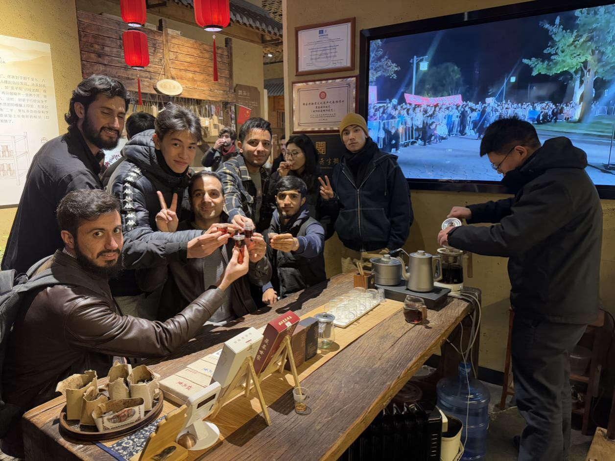 活動(dòng)最后,留學(xué)生們走進(jìn)中國(guó)茯茶文化博物館,仔細(xì)聽(tīng)取講解員對(duì)茯茶歷史淵源、制作工藝、品鑒方法和文化價(jià)值的介紹,親身體驗(yàn)茯茶的制作過(guò)程,領(lǐng)略中國(guó)茶文化的博大精深。