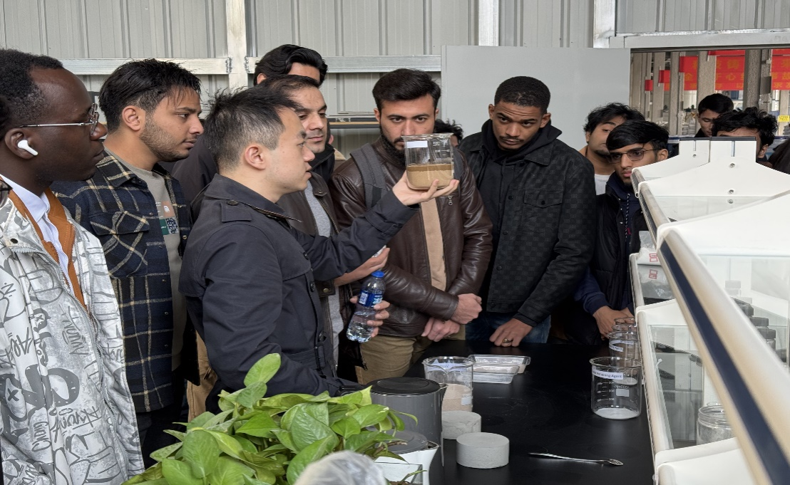 活動(dòng)開(kāi)始,留學(xué)生們來(lái)到西安湄南生物科技股份有限公司研發(fā)中心,認(rèn)真觀察防沙治沙“黑科技”的合成,并與技術(shù)人員交流,詢(xún)問(wèn)生產(chǎn)流程和技術(shù)細(xì)節(jié),感受中國(guó)企業(yè)為全球荒漠化治理的探索與創(chuàng)新。