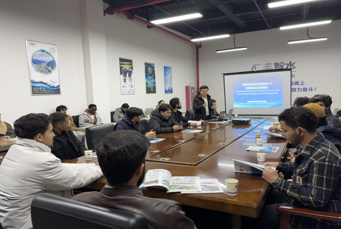 隨后,留學(xué)生們參觀了匯豐環(huán)保設(shè)備有限公司,詳細(xì)了解物聯(lián)網(wǎng)、大數(shù)據(jù)和人工智能等技術(shù)手段在智慧水務(wù)系統(tǒng)實(shí)現(xiàn)水資源的智能管理和優(yōu)化配置的原理。其間,新區(qū)部分企業(yè)介紹了各自運(yùn)營(yíng)模式、科技創(chuàng)新、人才需求、創(chuàng)業(yè)政策等留學(xué)生關(guān)注的話(huà)題。