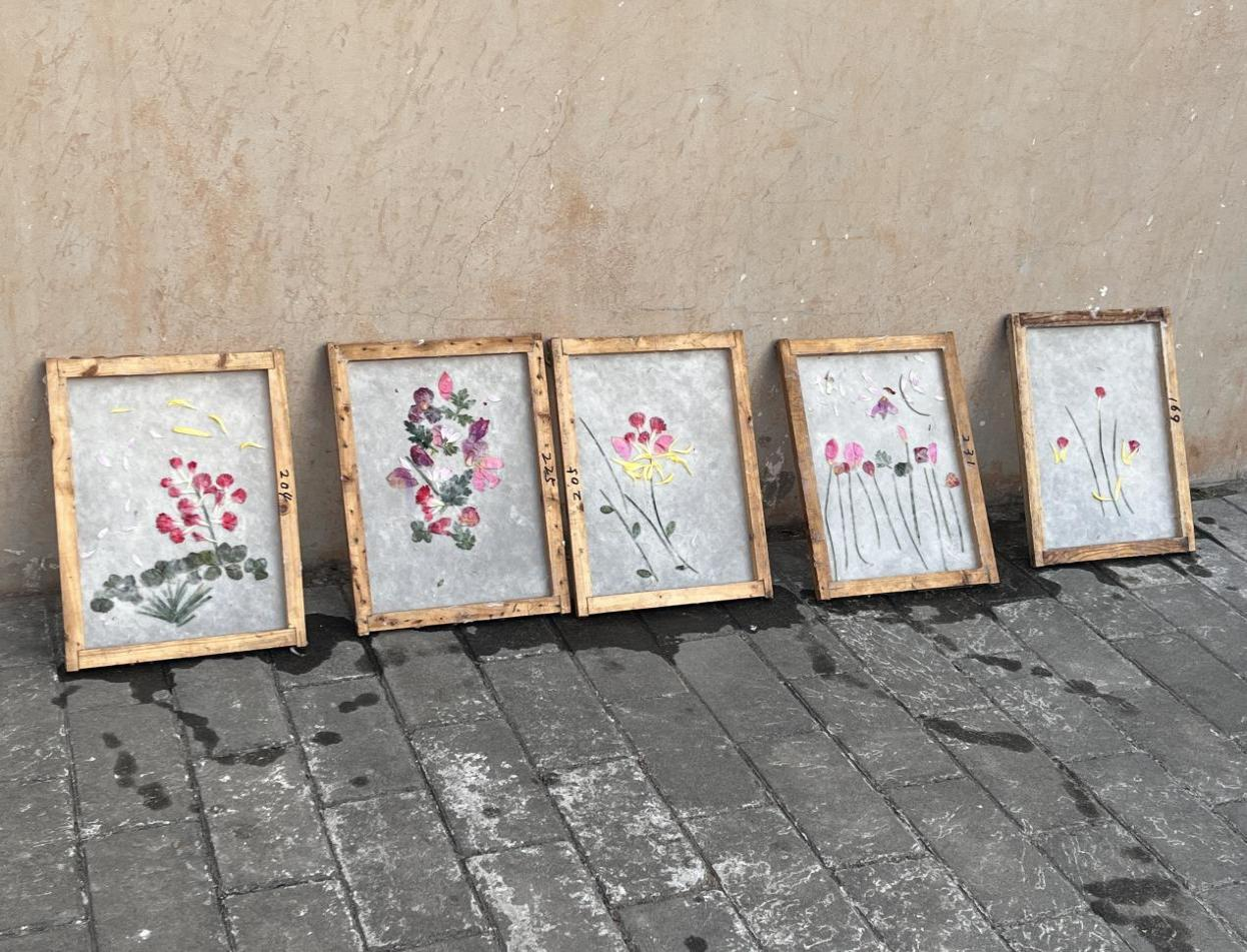 蔡侯紙博物館內(nèi),留學(xué)生們認(rèn)真聽取講解員對蔡倫造紙術(shù)的歷史背景和發(fā)展歷程的介紹,詳細(xì)了解古法造紙的三十六道大工序和七十二道小工序,跟隨非物質(zhì)文化產(chǎn)實(shí)踐老師體驗(yàn)造紙全過程,動手操作浸泡、蒸煮、搗漿等關(guān)鍵步驟。同學(xué)們對本次活動表現(xiàn)出極大興趣,充分發(fā)揮想象力,制作出了極具藝術(shù)創(chuàng)意的 “太陽紙”,切身感受到了造紙文化的獨(dú)特魅力。