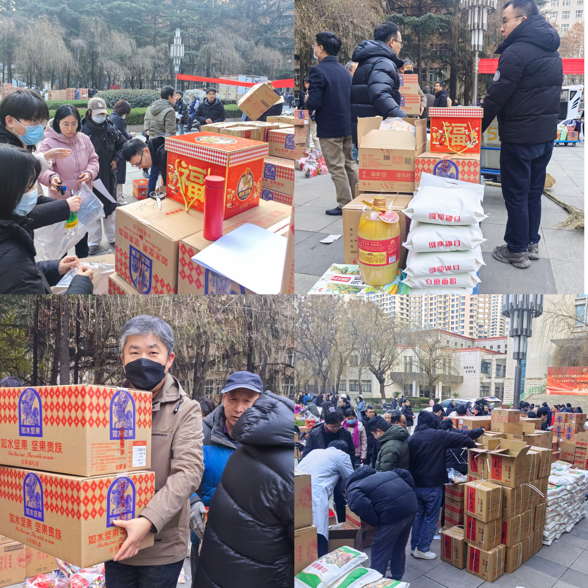 為切實貫徹剛剛閉幕的八屆教代會和九屆工代會會議精神,傳遞學校對廣大教職工的深切關懷與誠摯謝意 ,助力全校教職工度過一個歡樂、祥和的寒假與春節(jié),1 月 14 日,校工會于雁塔校區(qū)忠實廣場開展了節(jié)日福利發(fā)放活動,為辛勤工作在各個崗位上的教職工們送上衷心慰問、深切關愛以及新春佳節(jié)的美好祝福。