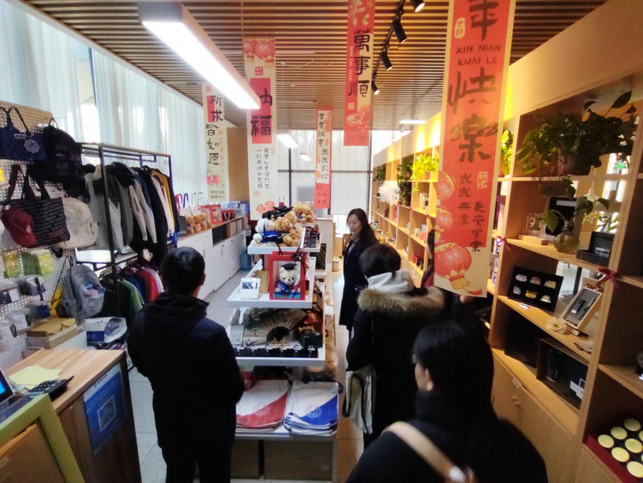 王曉一行在陳世兵陪同下參觀了位于西安電子科技大學(xué)南校區(qū)的西安壹玖叁壹學(xué)術(shù)交流服務(wù)有限公司旗下文創(chuàng)板塊實(shí)體店,深入細(xì)致了解了西安電子科技大學(xué)文創(chuàng)產(chǎn)品的設(shè)計、研發(fā)、定制、推廣過程及經(jīng)營現(xiàn)狀。這里店面寬敞明亮,時尚典雅,各色精美的文創(chuàng)產(chǎn)品以西電文化特色元素為設(shè)計基礎(chǔ),傳遞著對校園歲月的一份眷戀,承載了學(xué)生和校友對母校的情感紀(jì)念和精神歸屬。這里不單打造了一個定制、展示和銷售文創(chuàng)產(chǎn)品的窗口,也成為充滿校園文藝氣息的休閑所在,記錄了西電的歷史和傳統(tǒng),喚起人們對校園生活和大學(xué)文化的回憶。校園文創(chuàng)通過文創(chuàng)實(shí)體店、線上小程序商城等銷售渠道,傳達(dá)可觸可感的歷史印記、青春回憶,傳承和弘揚(yáng)校園文化,傳播校園文化精神。