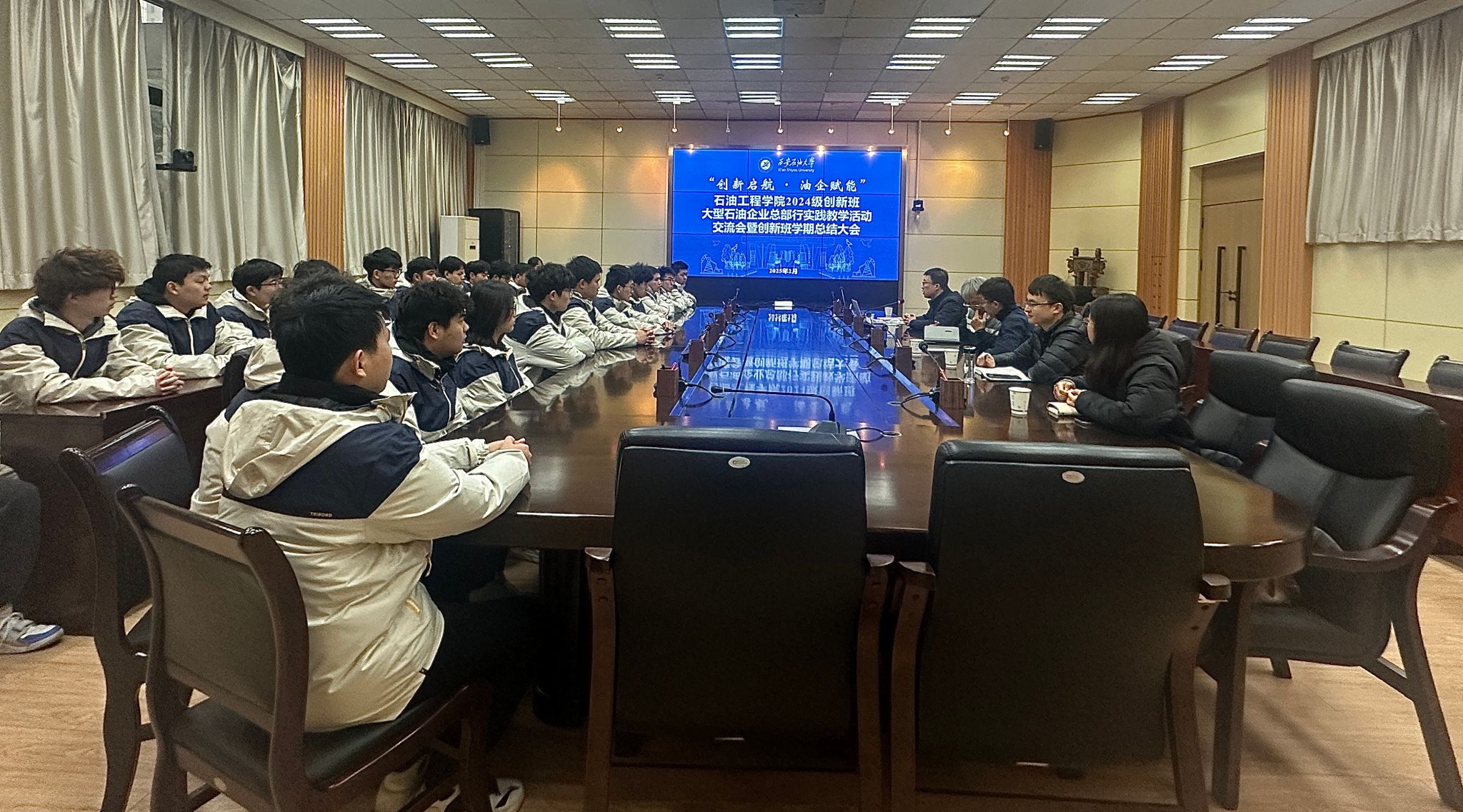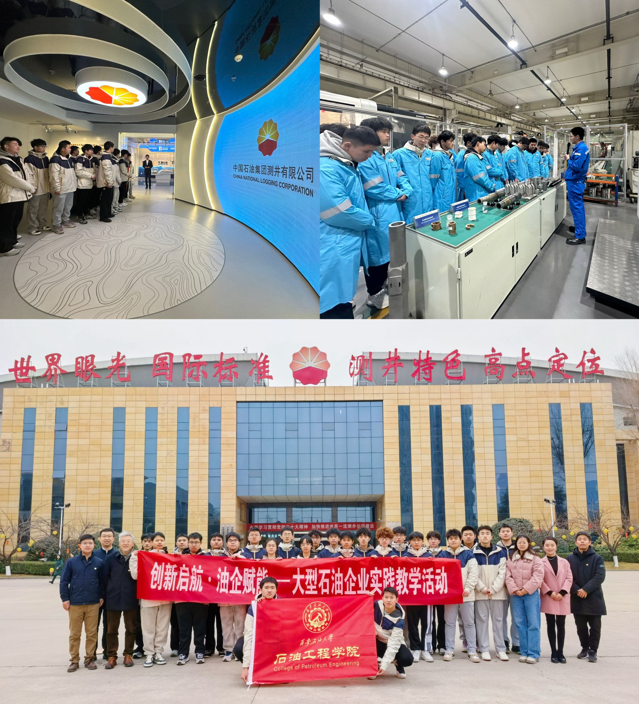 為進(jìn)一步落實(shí)拔尖創(chuàng)新人才培養(yǎng)目標(biāo),踐行“小規(guī)模、高起點(diǎn)、有特色”的本研貫通人才培養(yǎng)方式,深化產(chǎn)教融合、校企聯(lián)合培養(yǎng)模式,石油工程學(xué)院黨委書記司馬文龍、院長黃海、黨委副書記張浩然、副院長王琛一行于2月18日至22日組織帶領(lǐng)首屆創(chuàng)新班同學(xué)分別走進(jìn)中國石油集團(tuán)測井有限公司、中國石油長慶油田分公司、延長石油(集團(tuán))有限責(zé)任公司等大型石油企業(yè)總部,通過實(shí)地觀摩企業(yè)總部運(yùn)行模式、了解企業(yè)歷史文化、油氣開發(fā)科技成果及行業(yè)發(fā)展趨勢等,助力學(xué)生掌握石油行業(yè)科技前沿動態(tài),鍛造未來能源管理者的大視野,為專業(yè)學(xué)習(xí)及職業(yè)發(fā)展注入新動能。