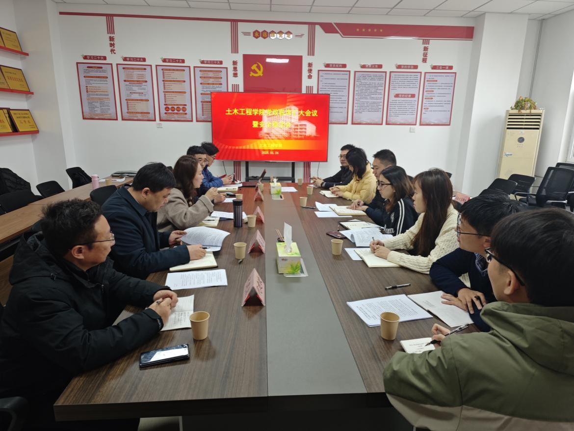 為全面貫徹省、校關(guān)于穩(wěn)定安全工作的相關(guān)文件要求,嚴(yán)格落實在2025年春季開學(xué)檢查工作中常江書記的指示,進一步加強學(xué)院內(nèi)部管理,確保學(xué)院各項工作平穩(wěn)有序開展,2月24日上午,土木工程學(xué)院在鄠邑校區(qū)開物樓135召開了黨政聯(lián)席擴大會暨安全穩(wěn)定工作會。院領(lǐng)導(dǎo)班子全體成員、工會主席、各辦公室負(fù)責(zé)人和全體輔導(dǎo)員參加會議,會議由學(xué)院黨委書記賈莉娜主持。