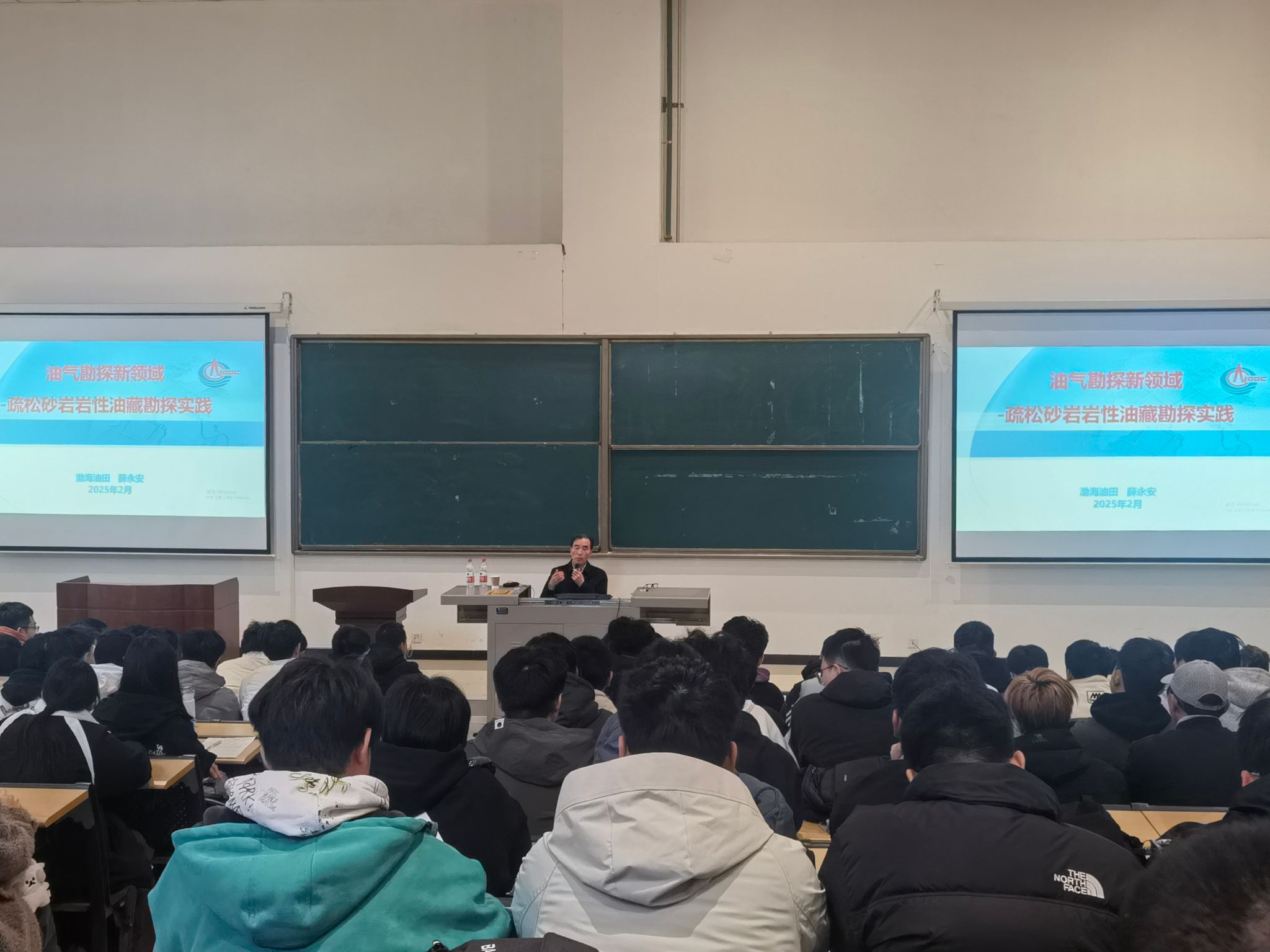 為拓寬學(xué)術(shù)視野、啟迪科研思維,2月27日上午,地球科學(xué)與工程學(xué)院邀請中海油渤海油田原副總經(jīng)理兼總地質(zhì)師、首席科學(xué)家 薛永安教授為學(xué)院師生帶來一場題為“油氣勘探新領(lǐng)域-疏松砂巖巖性油藏勘探與系列大發(fā)現(xiàn)”的學(xué)術(shù)講座。講座由學(xué)院黨委書記馬行天主持,學(xué)院各年級輔導(dǎo)員及200余名本科生參加。