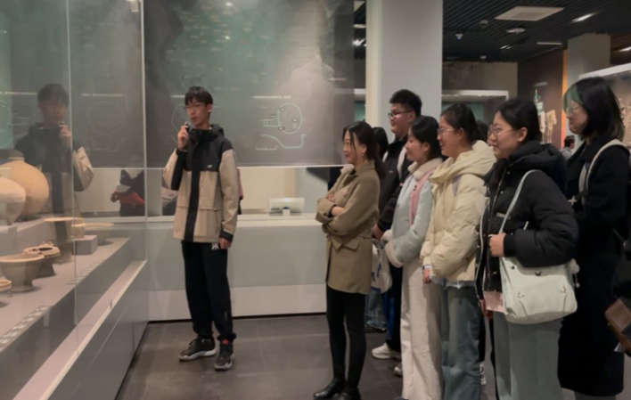 西安博物院是一座集文物收藏、科學(xué)研究、社會(huì)教育、園林休閑為一體的綜合性博物館。博物館內(nèi)藏品豐富,涵蓋了從遠(yuǎn)古時(shí)期到近現(xiàn)代的歷史文物,是了解西安乃至陜西歷史文化的重要窗口?;顒?dòng)當(dāng)天,“英銳實(shí)踐團(tuán)”成員在博物館工作人員的帶領(lǐng)下,對(duì)漢代玉杯、金背瑞獸葡萄鏡、秦代玉高足杯等文物進(jìn)行英文講解,了解了西安作為十三朝古都的輝煌歷史和文化底蘊(yùn)。此次活動(dòng)旨在通過(guò)參觀博物院,提升學(xué)生的英語(yǔ)表達(dá)能力,加深對(duì)中華優(yōu)秀傳統(tǒng)文化的理解與傳承,同時(shí)助力中華文化的國(guó)際傳播。