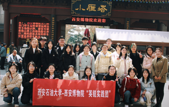 為深化語(yǔ)言實(shí)踐與文化育人融合,由外國(guó)語(yǔ)學(xué)院主辦,大學(xué)外語(yǔ)第二教學(xué)部黨支部承辦的“英韻?鐵魂”語(yǔ)言實(shí)踐拓展?fàn)I在2月26日、27日進(jìn)行了開營(yíng)活動(dòng),成立西安博物院“英銳實(shí)踐團(tuán)”、 鄠邑農(nóng)民畫展館“語(yǔ)翼展頌隊(duì)”、鐵人王進(jìn)喜紀(jì)念館“英銳礪行團(tuán)”,并分別在沈舒方、武絨、張文婷三位指導(dǎo)教師的帶領(lǐng)下前往西安博物院、鄠邑區(qū)農(nóng)民畫博物館、鐵人王進(jìn)喜紀(jì)念館開展語(yǔ)言實(shí)踐活動(dòng)。實(shí)踐團(tuán)成員為來(lái)自全校各院(系)及首屆創(chuàng)新班學(xué)生代表。此次活動(dòng)以“語(yǔ)言賦能文化傳承,鐵人精神鑄魂育人”為主題,通過(guò)實(shí)地調(diào)研、文化體驗(yàn)、雙語(yǔ)講解、視頻錄制等形式,引導(dǎo)學(xué)生在實(shí)踐中感悟鐵人精神內(nèi)涵,提升跨文化傳播能力。