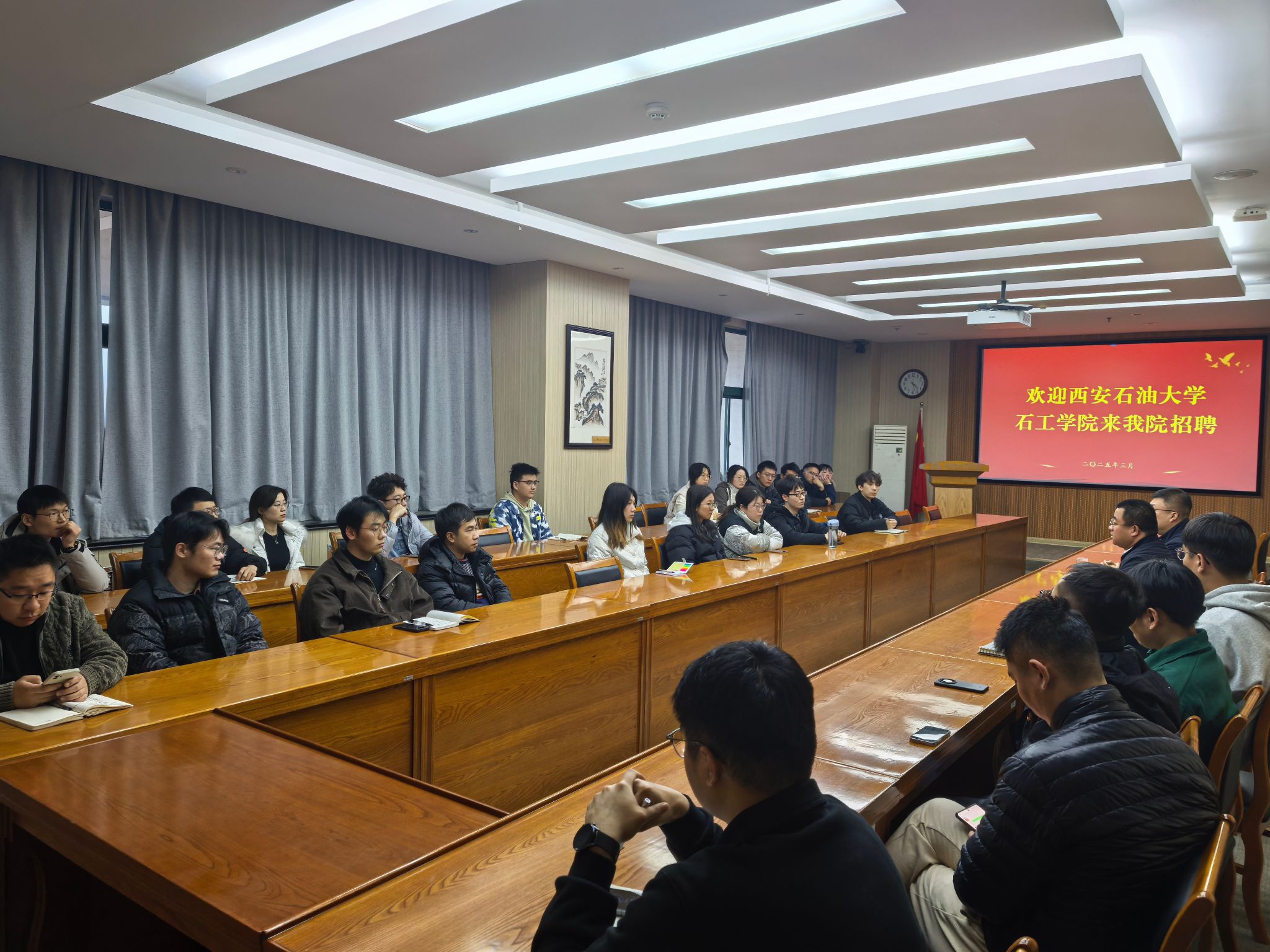調(diào)研期間,我院在中國(guó)石油大學(xué)(華東)舉辦了青年教師專場(chǎng)招聘會(huì)。黃海、王琛向與會(huì)博士生及青年學(xué)者詳細(xì)介紹了學(xué)院的發(fā)展現(xiàn)狀、學(xué)科優(yōu)勢(shì)、平臺(tái)建設(shè)、人才政策以及未來(lái)發(fā)展規(guī)劃,誠(chéng)摯邀請(qǐng)優(yōu)秀青年學(xué)者加盟學(xué)院,共謀發(fā)展。