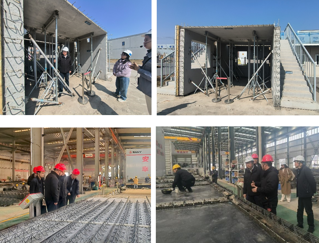 在疊合板、預(yù)制構(gòu)件生產(chǎn)車間,工作人員詳細介紹了疊合板從原材料上料、鋼筋布置與綁扎,到混凝土澆筑、振搗及養(yǎng)護的全過程?;ㄌ幰恍兄攸c關(guān)注生產(chǎn)過程中的質(zhì)量把控節(jié)點,比如鋼筋間距的精準控制、混凝土配合比的嚴格執(zhí)行,還詢問了設(shè)備維護周期與故障應(yīng)對措施,旨在從源頭上了解產(chǎn)品質(zhì)量保障機制。在產(chǎn)品展示區(qū),基建處一行仔細查看構(gòu)件成品質(zhì)量,向現(xiàn)場施工人員詢問安裝過程中遇到的難點及解決方案,像如何確保預(yù)制構(gòu)件在高空吊裝時的精準就位,以及不同類型構(gòu)件連接后的整體穩(wěn)定性等問題。在適用性方面,結(jié)合校園建筑功能多樣、人流密集等特點,分析各類產(chǎn)品是否契合教學(xué)樓、宿舍、體育館等不同建筑的使用需求。