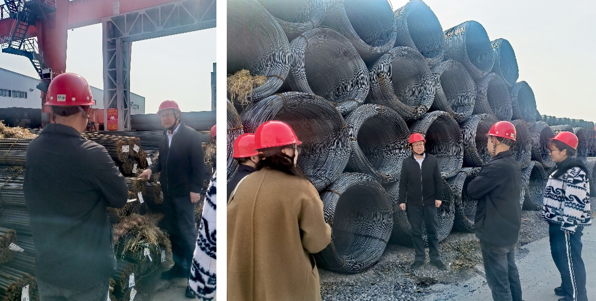 在鋼材供應(yīng)基地,基建處一行詳細查看了各類鋼材的型號、規(guī)格、表面質(zhì)量等參數(shù),了解鋼材的生產(chǎn)現(xiàn)狀與庫存情況。通過與基地負責人溝通,掌握鋼材的進貨渠道及價格成本構(gòu)成,尤其是針對學(xué)校新項目建設(shè)所需的圓鋼、螺紋鋼等關(guān)鍵鋼材品種,深入探討了其市場供應(yīng)趨勢與價格走勢。