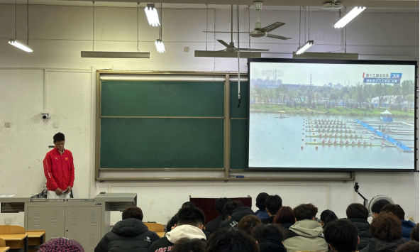報告會上,茍毅飛首先介紹了舉辦本次報告會的目的,一是讓廣大學生了解賽艇運動知識,熟悉賽艇運動文化,并由此愛上賽艇運動;二是通過選拔的方式,組建學校賽艇運動隊,并通過專業(yè)訓練,能在各類賽艇比賽中獲得佳績,為學校爭得榮譽。
