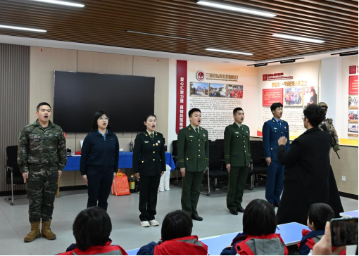我校退役大學生士兵代表們通過講述軍營故事、科普國防知識、齊唱軍歌等形式,帶領孩子們“沉浸式”體驗部隊生活的紀律與熱血。孩子們認真聆聽,眼中充滿敬佩與向往。這場別開生面的愛國教育課,以榜樣的力量傳遞軍旅精神,在孩子們的幼小心靈中播撒下自強不息、報效祖國的種子。