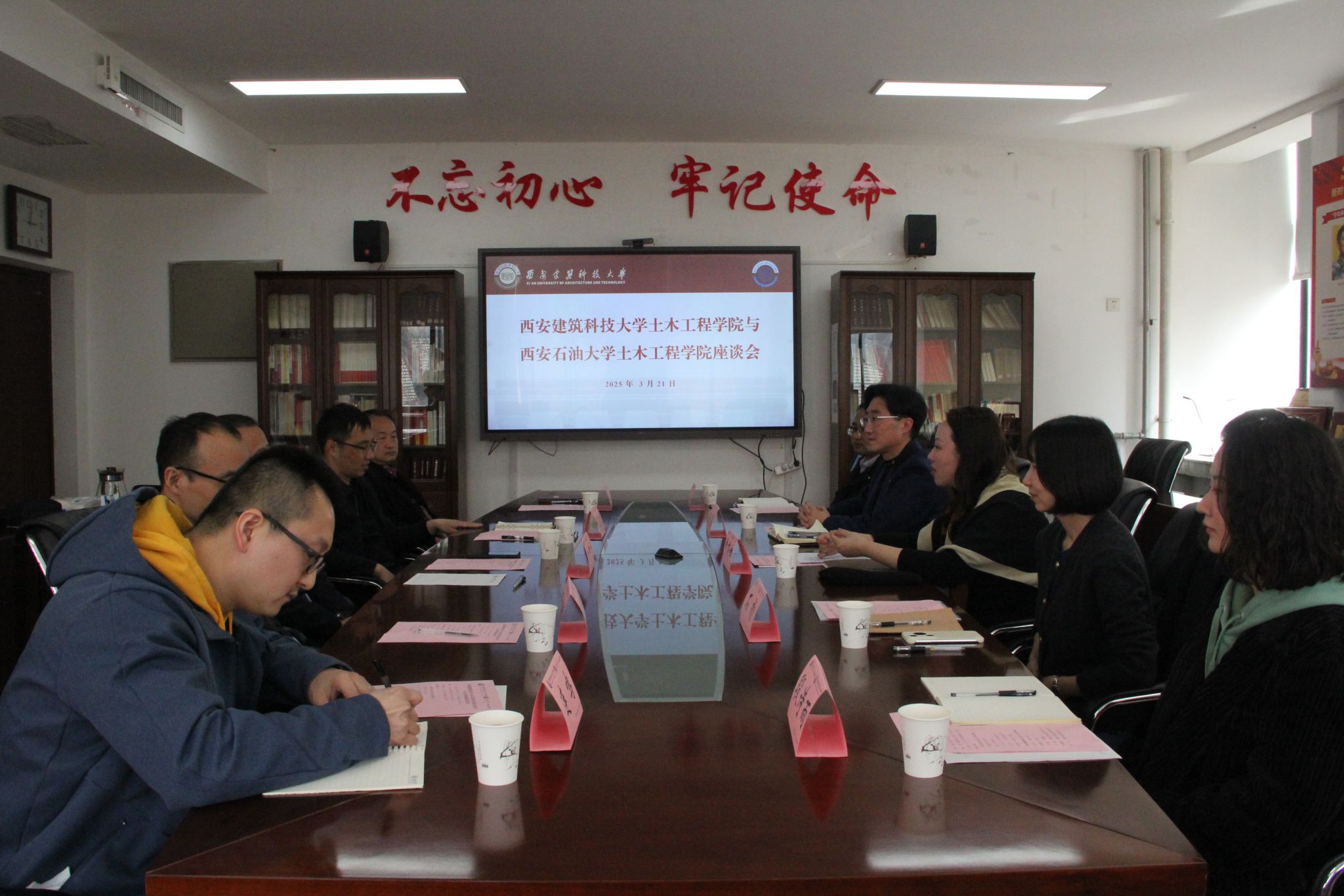 為進(jìn)一步深化教育教學(xué)改革,提升本科人才培養(yǎng)質(zhì)量,做好25版本科人才培養(yǎng)方案修訂和優(yōu)化工作,3月21日下午,土木工程學(xué)院黨委書記賈莉娜、副院長(zhǎng)崔瑩、土木工程系主任石韻、系副主任呂高、學(xué)院實(shí)驗(yàn)中心段詩(shī)雨一行赴西安建筑科技大學(xué)土木工程學(xué)院開展專題調(diào)研和交流學(xué)習(xí)活動(dòng)。西安建筑科技大學(xué)土木工程學(xué)院黨委書記江中文、副院長(zhǎng)門進(jìn)杰、混凝土結(jié)構(gòu)教研室支部書記王威、道路與橋梁工程教研室主任孫建鵬、鋼結(jié)構(gòu)教研室副主任連鳴等接待了調(diào)研小組一行并座談交流。