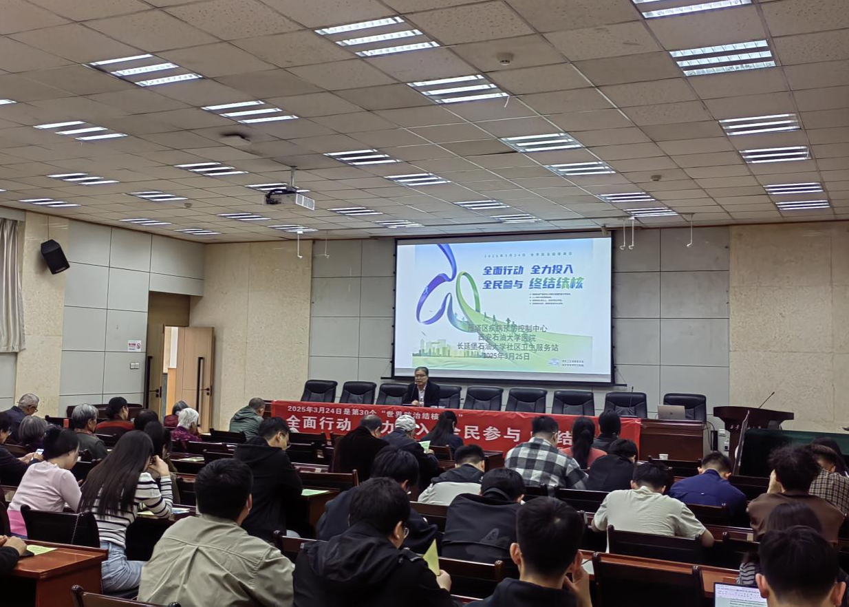 為迎接第30個“世界防治結(jié)核病日”,進一步增強師生結(jié)核病防控意識,3月24日、25日下午校醫(yī)院聯(lián)合學(xué)生工作部(處)、研究生工作部邀請西安市雁塔區(qū)疾病預(yù)防控制中心副主任醫(yī)師李海軍、鄠邑區(qū)疾病預(yù)防控制中心結(jié)防科副科長王旦、鄭美辰老師分別在雁塔校區(qū)、鄠邑校區(qū)開展“全面行動 全力投入 全民參與 終結(jié)結(jié)核”、流行性出血熱專題知識講座。校醫(yī)院部分醫(yī)務(wù)人員、師生、社區(qū)居民約300人參加了講座。報告開始前,校醫(yī)院醫(yī)務(wù)人員在報告廳外設(shè)立宣傳展板、咨詢臺,為學(xué)生發(fā)放了有關(guān)結(jié)核病、流行性出血熱宣傳手冊和宣傳單等宣傳資料。