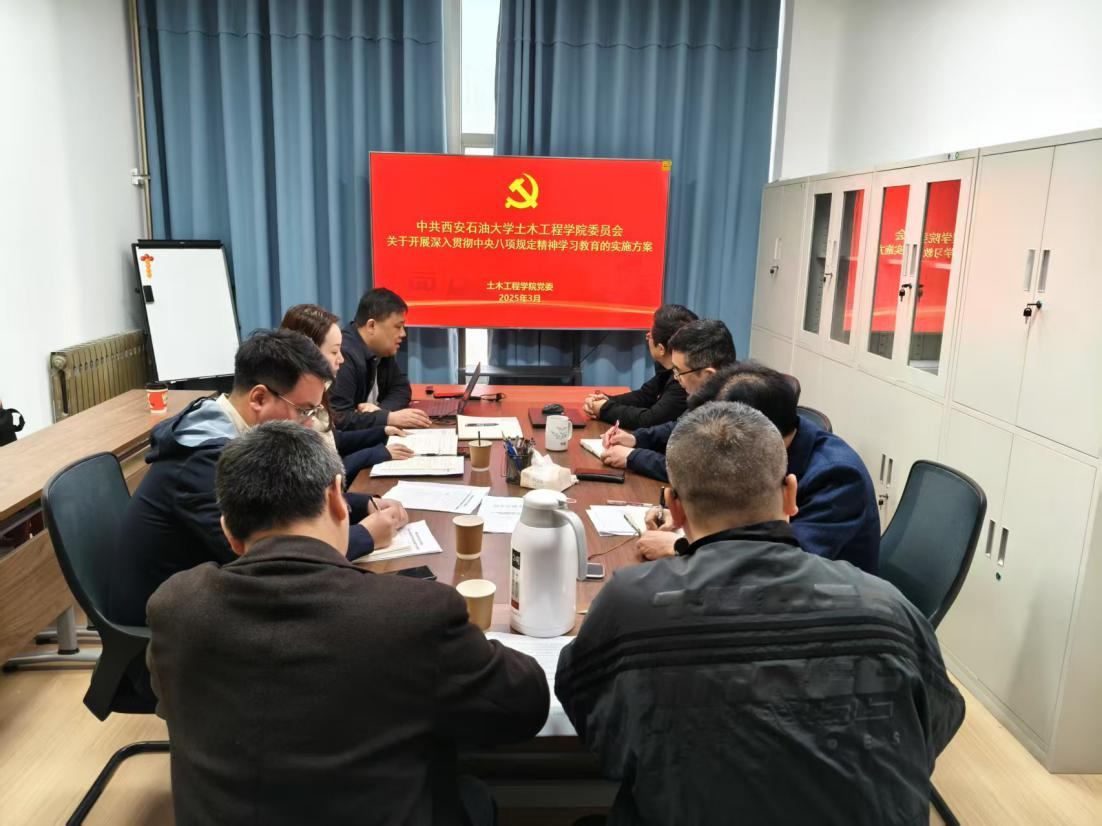 為深入學(xué)習(xí)貫徹習(xí)近平總書記關(guān)于深入貫徹中央八項規(guī)定精神學(xué)習(xí)教育的重要講話和重要指示精神,按照學(xué)?!蛾P(guān)于在全校開展深入貫徹中央八項規(guī)定精神學(xué)習(xí)教育的實施方案》工作要求,3月24日,土木工程學(xué)院黨委召開深入貫徹中央八項規(guī)定精神學(xué)習(xí)教育動員部署會。會議由學(xué)院黨委書記賈莉娜主持,學(xué)院黨委委員、各教工支部書記參加了會議。