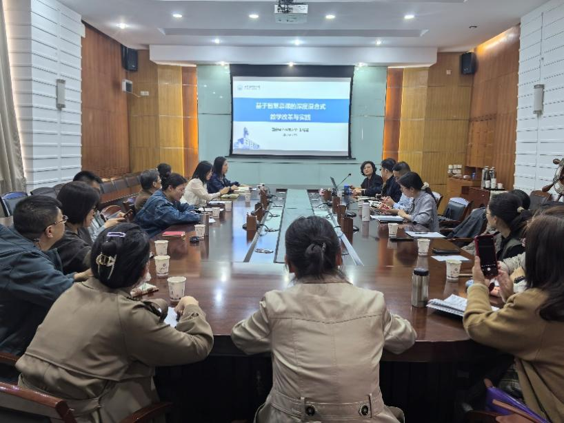 在研討環(huán)節(jié),與會(huì)教師圍繞”AI技術(shù)在教學(xué)評(píng)價(jià)中的應(yīng)用路徑”“智能平臺(tái)與課程體系的融合策略”等核心議題展開熱議。多位教師結(jié)合一線教學(xué)實(shí)踐,就個(gè)性化學(xué)習(xí)圖譜構(gòu)建、教學(xué)資源智能推薦算法等關(guān)鍵技術(shù)問題與朱教授深入探討,現(xiàn)場(chǎng)學(xué)術(shù)氛圍濃厚。
