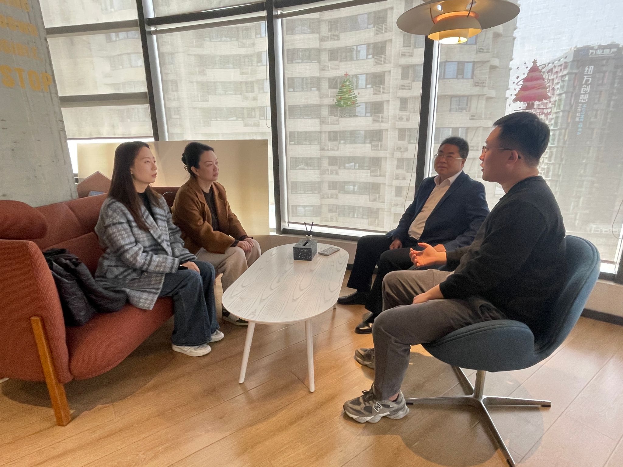 儀式結(jié)束后,余小勇一行人參觀了AF國際藝術(shù)中心的教學(xué)區(qū)、作品展示廳及辦公環(huán)境,深入了解企業(yè)運(yùn)營模式與實(shí)習(xí)場景?。盛丹與企業(yè)代表圍繞學(xué)生留學(xué)申請中的常見問題展開討論,計(jì)劃未來將聯(lián)合協(xié)作,一同優(yōu)化實(shí)習(xí)指導(dǎo)方案,為學(xué)生提供“一站式”留學(xué)與就業(yè)服務(wù)?。