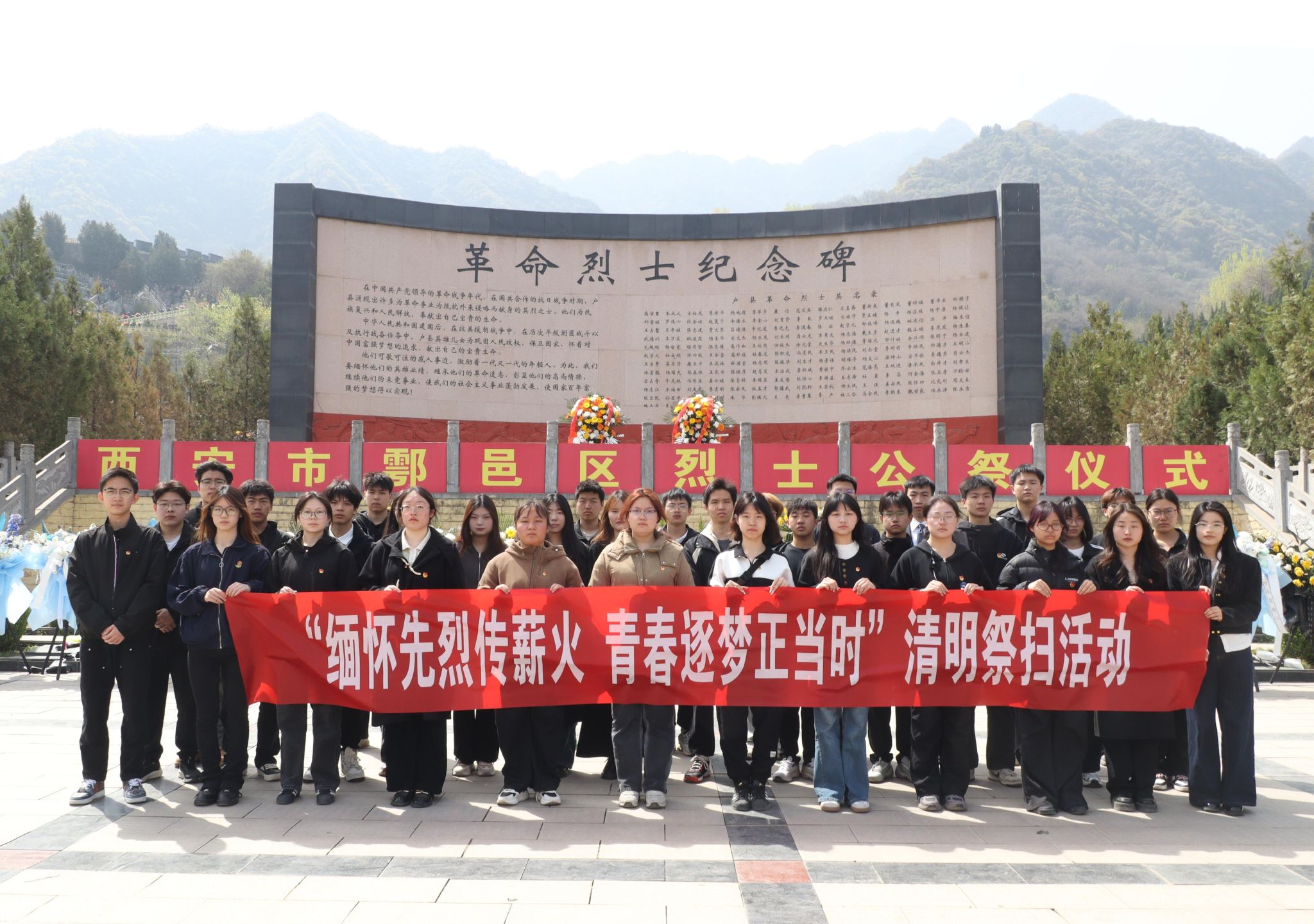 為弘揚(yáng)民族精神,緬懷革命先烈,厚植紅色基因,在清明節(jié)來臨之際,校團(tuán)委組織團(tuán)學(xué)骨干赴鄠邑區(qū)金南山革命烈士陵園開展“緬懷先烈傳薪火,青春逐夢正當(dāng)時”主題祭掃活動,校團(tuán)委書記王剛與40余名團(tuán)學(xué)骨干參加活動。